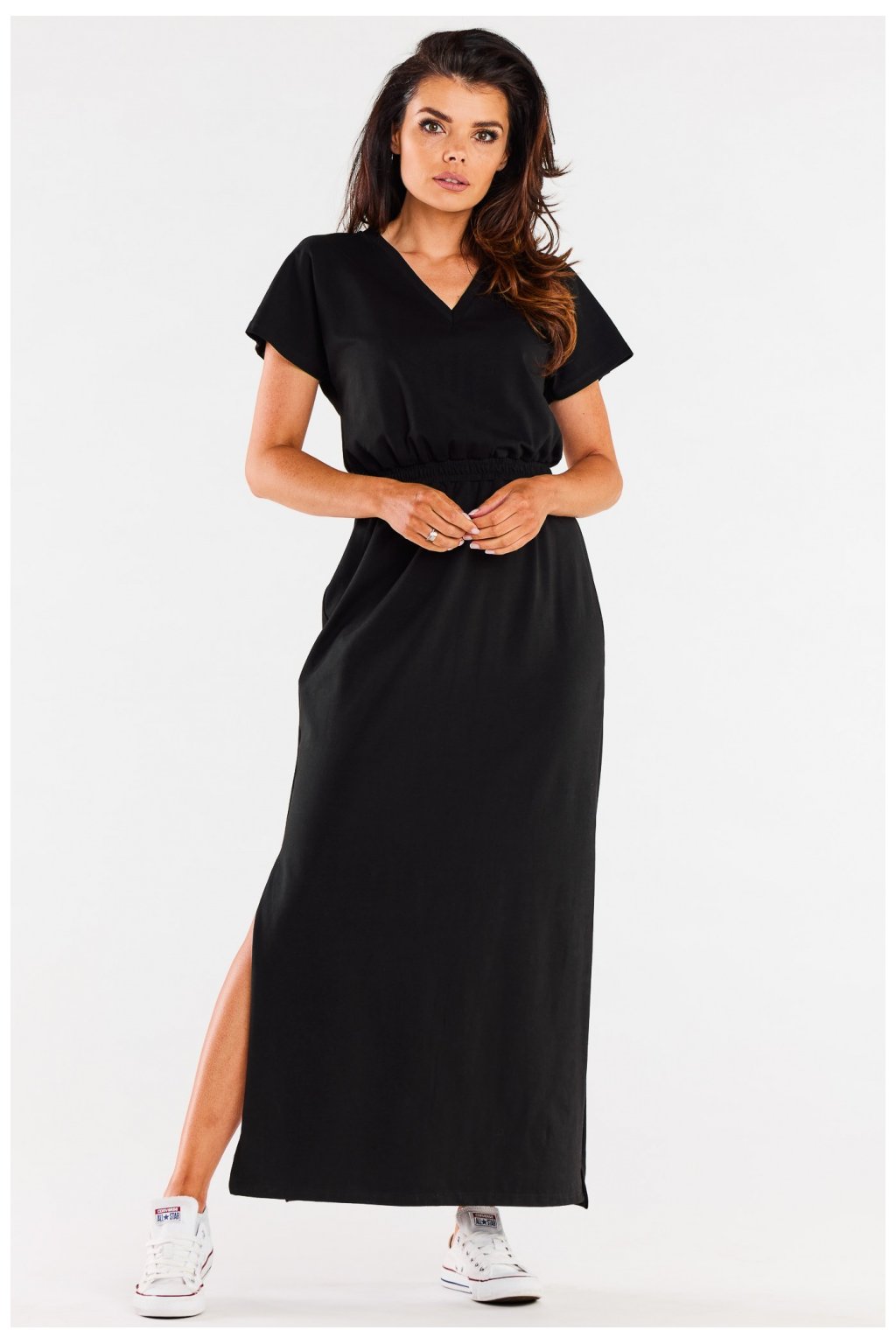 Maxi šaty s krátkými rukávy a srdíčkovým výstřihem. Maxi délka vám umožní opticky zeštíhlit siluetu a zdůraznit vaše přednosti. Navrženo a ušito v Polsku.Lycra 8 %