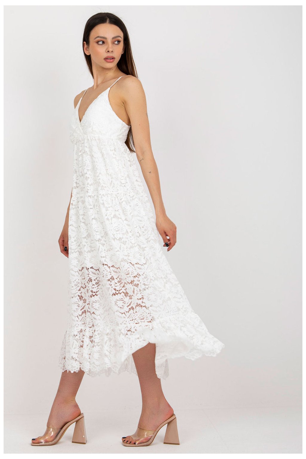Dívčí model, mírně rozšířený, zakončený krásnými volánky na rukávech. Šaty se zapínají na krytý zip a mají podšívku. Velmi dobře střižená kreace,…