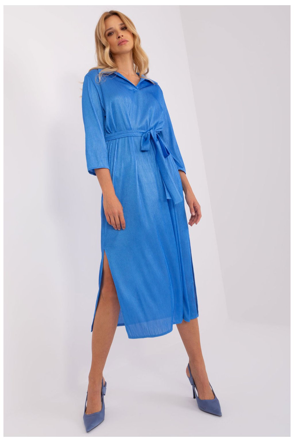 Koktejlové šaty s přiléhavým střihem a 3/4 rukávem. Šaty se zapínají na skrytý zip. Na rameni ozdobný volán. Ideální volba na mnoho příležitostí.