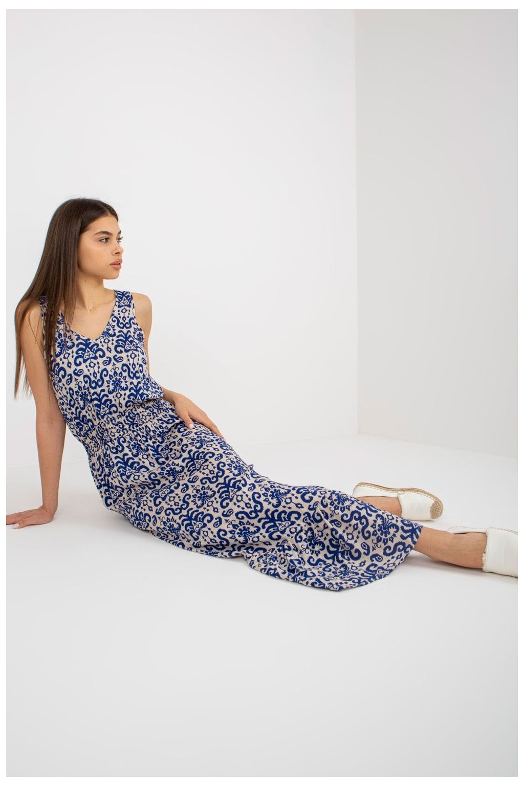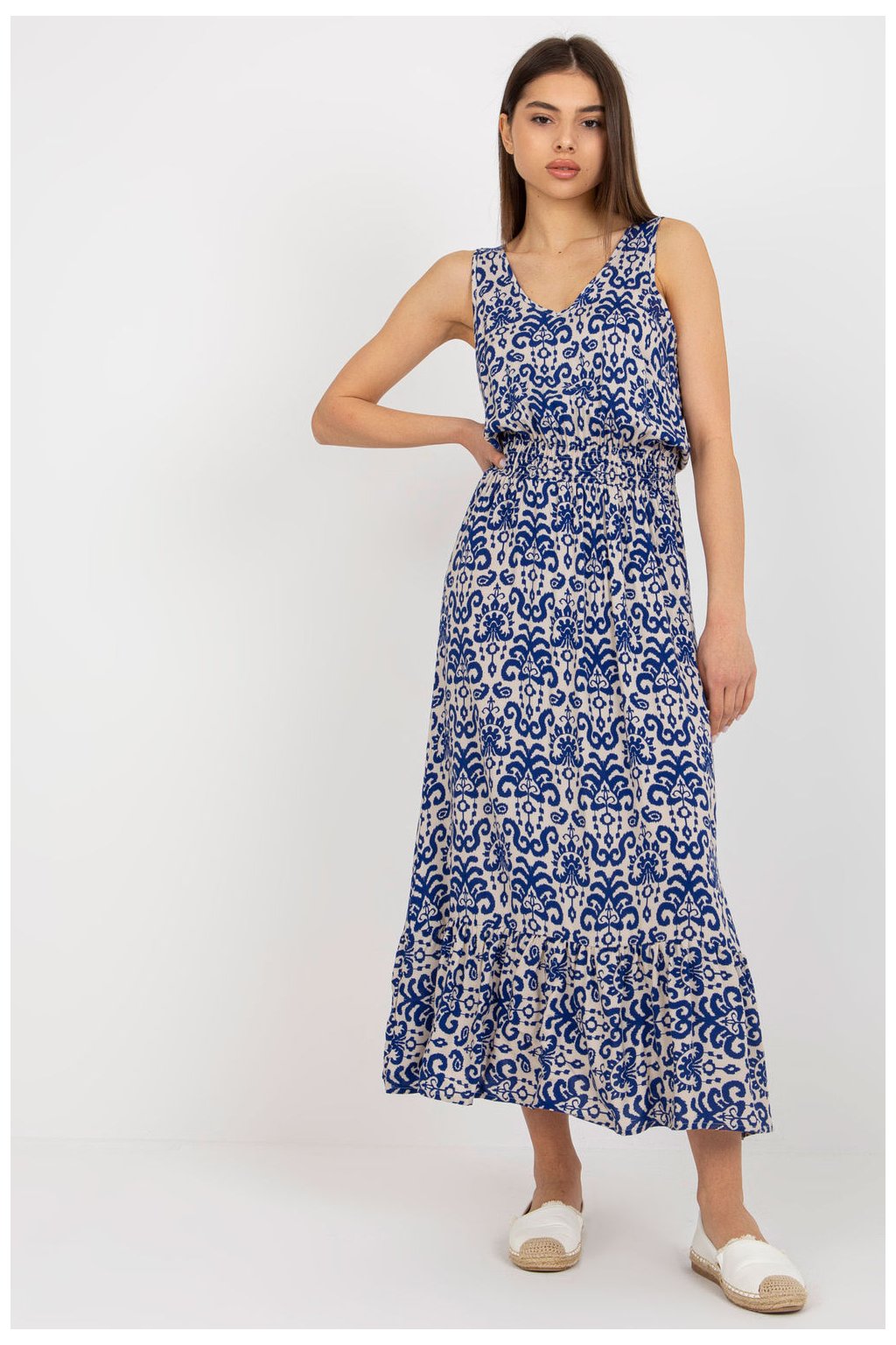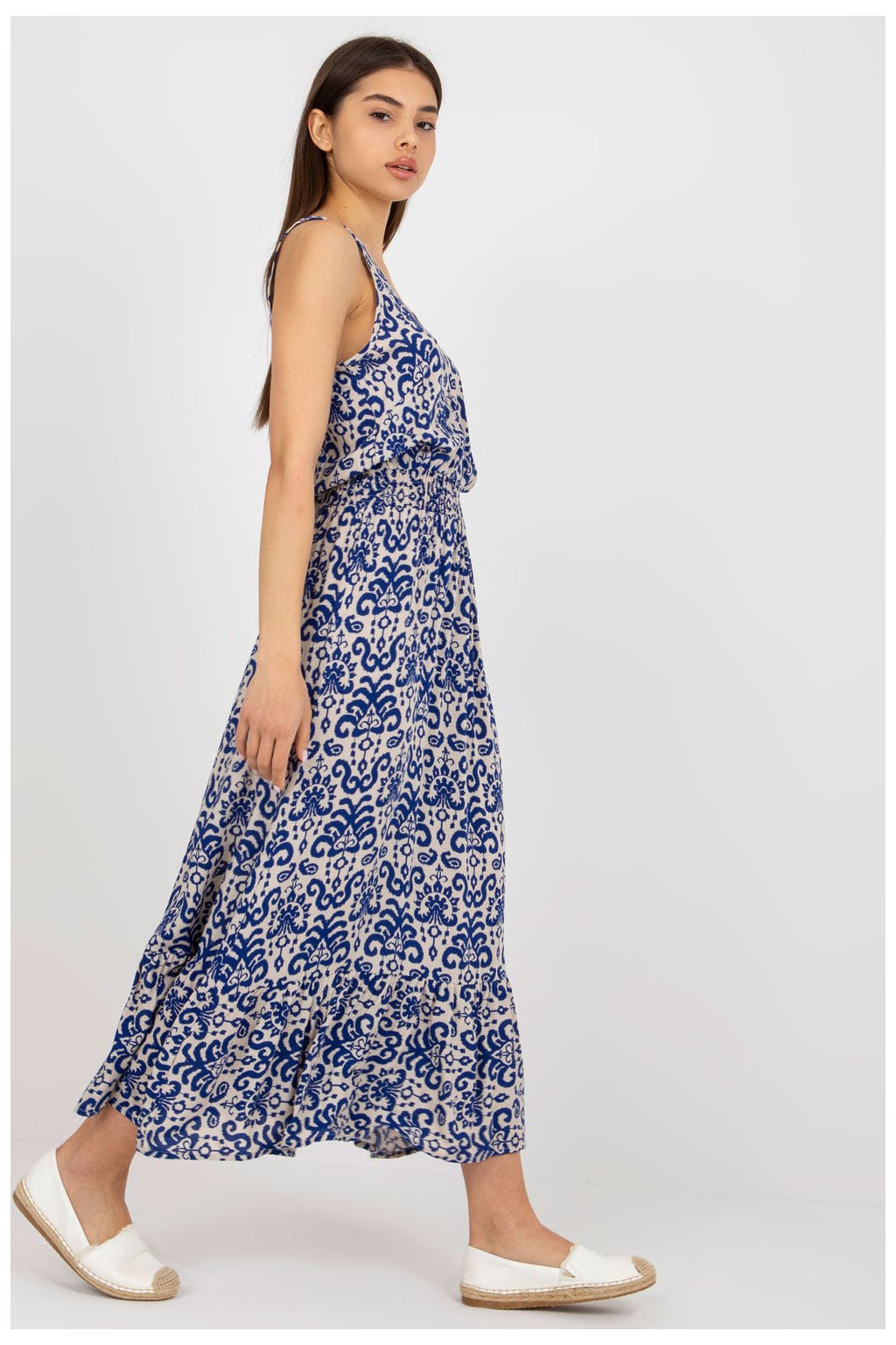 Dlouhé šaty s výstřihem a volánky na ramenou. Šaty v chrpově modré barvě. Značka numoco. Vyrobeno v Polsku. Elastan…