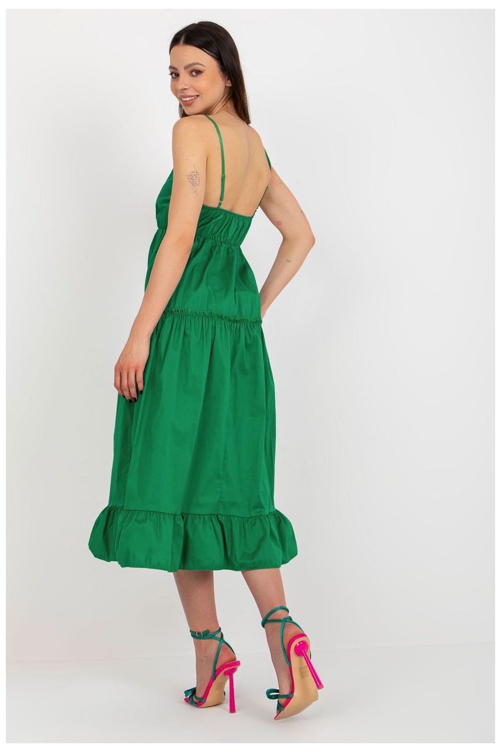 Letní šaty na nastavitelných ramínkách s obálkovým výstřihem a ozdobným volánkem ve spodní části. Šaty mají podšívku. Spodní část šatů je rozšířená.Elastan 2 %