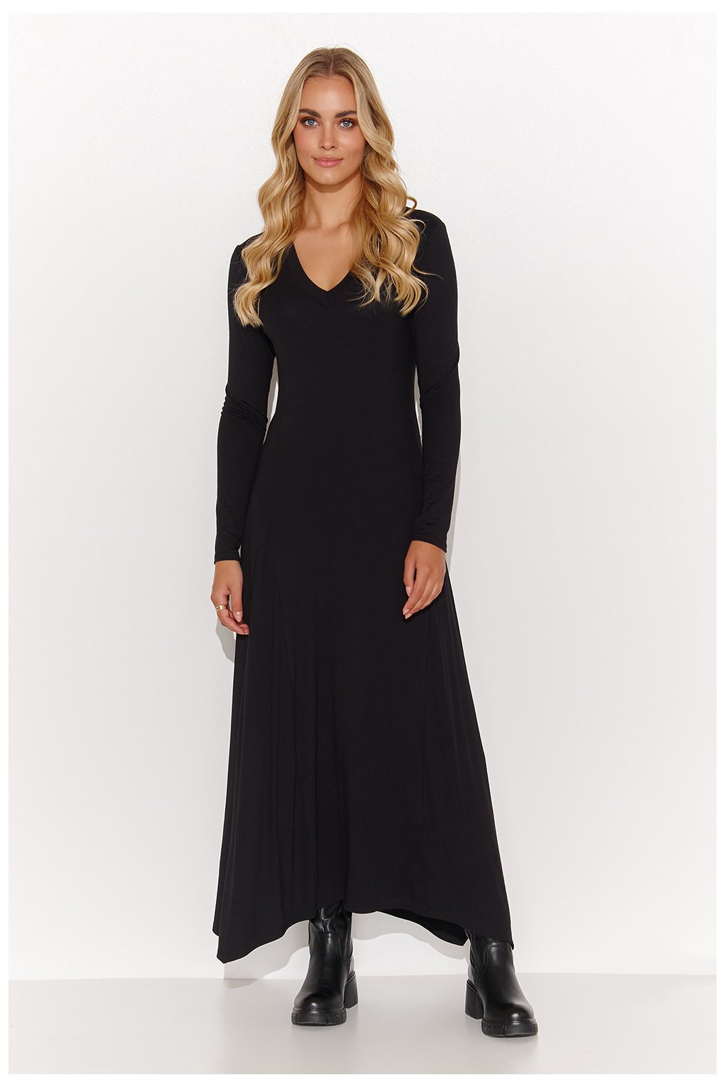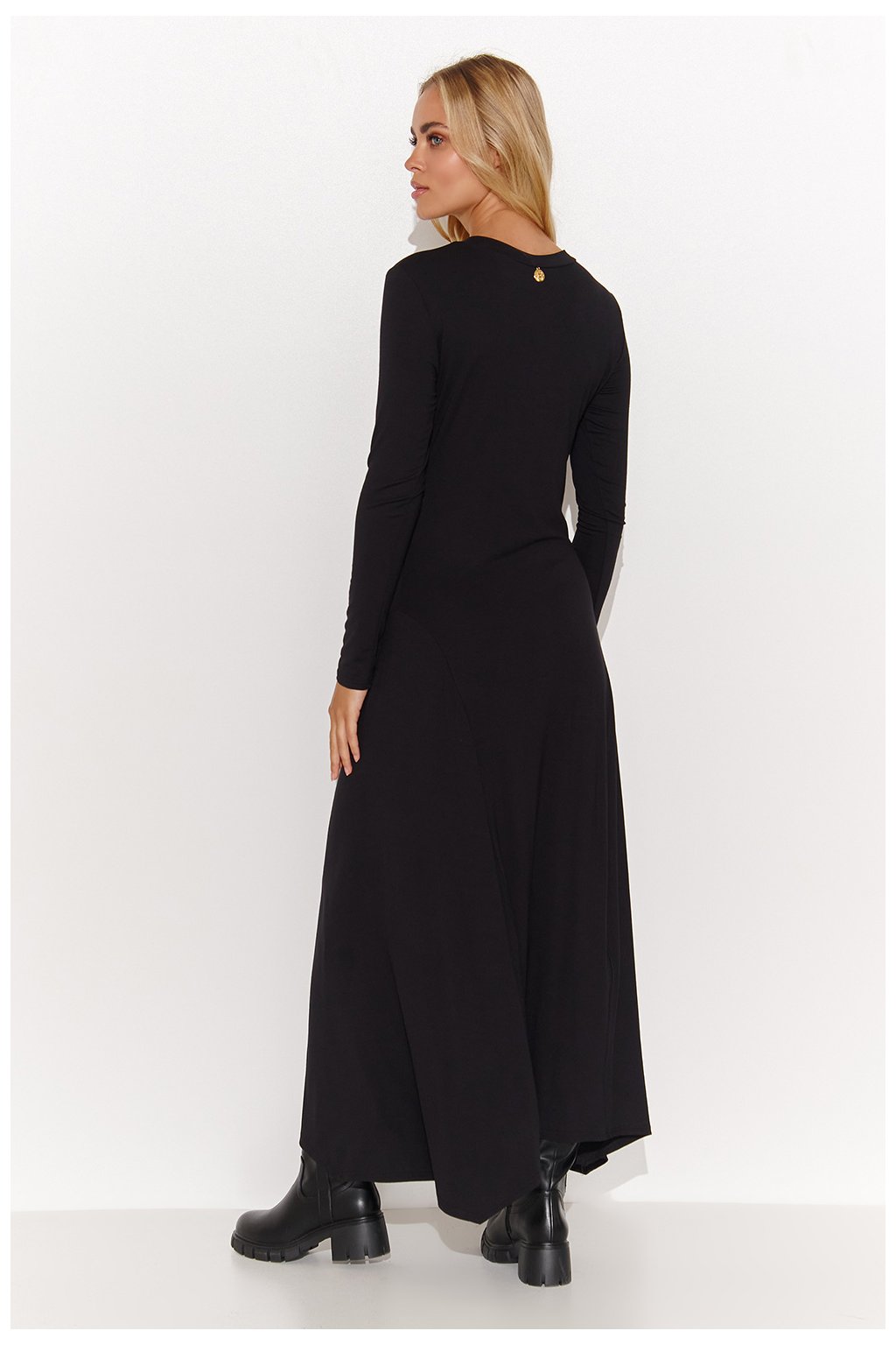 Tyto dlouhé viskózové šaty jsou ideální volbou pro ženy, které ocení pohodlí i styl. Jejich vypasovaný horní díl zvýrazňuje siluetu, zatímco rozšířený spodní díl dodává lehkost a volnost pohybu. Díky dlouhým rukávům jsou šaty vhodné pro různé příležitosti, zatímco srdíčkový výstřih dodává šatům jemnost a eleganci. Ozdobná destička všitá do zad je výrazným detailem, který podtrhuje jedinečnost šatů. Tento model doporučujeme do práce, ale také na každý den, na procházku s přáteli. Šaty jsou k dispozici ve třech klasických barvách: černé, grafitové a velbloudí. Oblečte si je s ikonickými botami a vytvořte si pohodlný a módní každodenní vzhled. Nebo je kombinujte s elegantními lodičkami na podpatku pro formálnější příležitosti. Ať už je budete nosit jakkoli, poskytnou vám volnost pohybu a přidají na eleganci. Díky vzdušnému materiálu a jedinečnému střihu si šaty ráda vyberete pro mnoho různých příležitostí.Viskóza 95 %