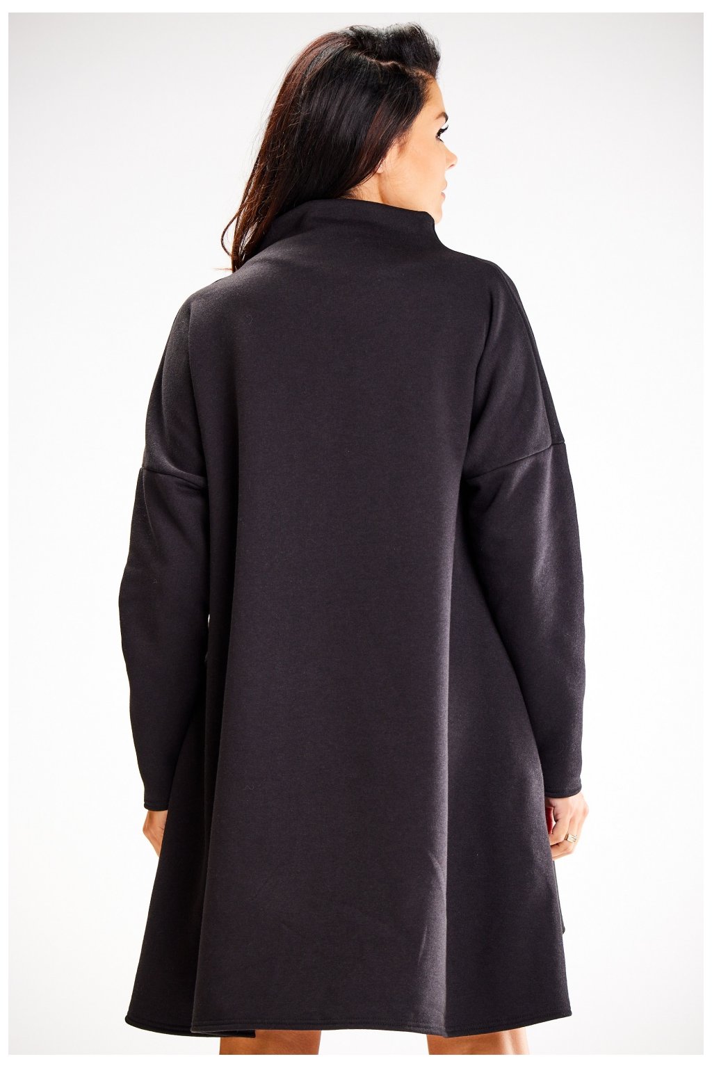 Rovný střih ideální pro mnoho typů postav. Půlkulatý výstřih s průhlednou síťovanou vsadkou, dlouhé rukávy s dvouvrstvým efektem od linie loktů, módně…