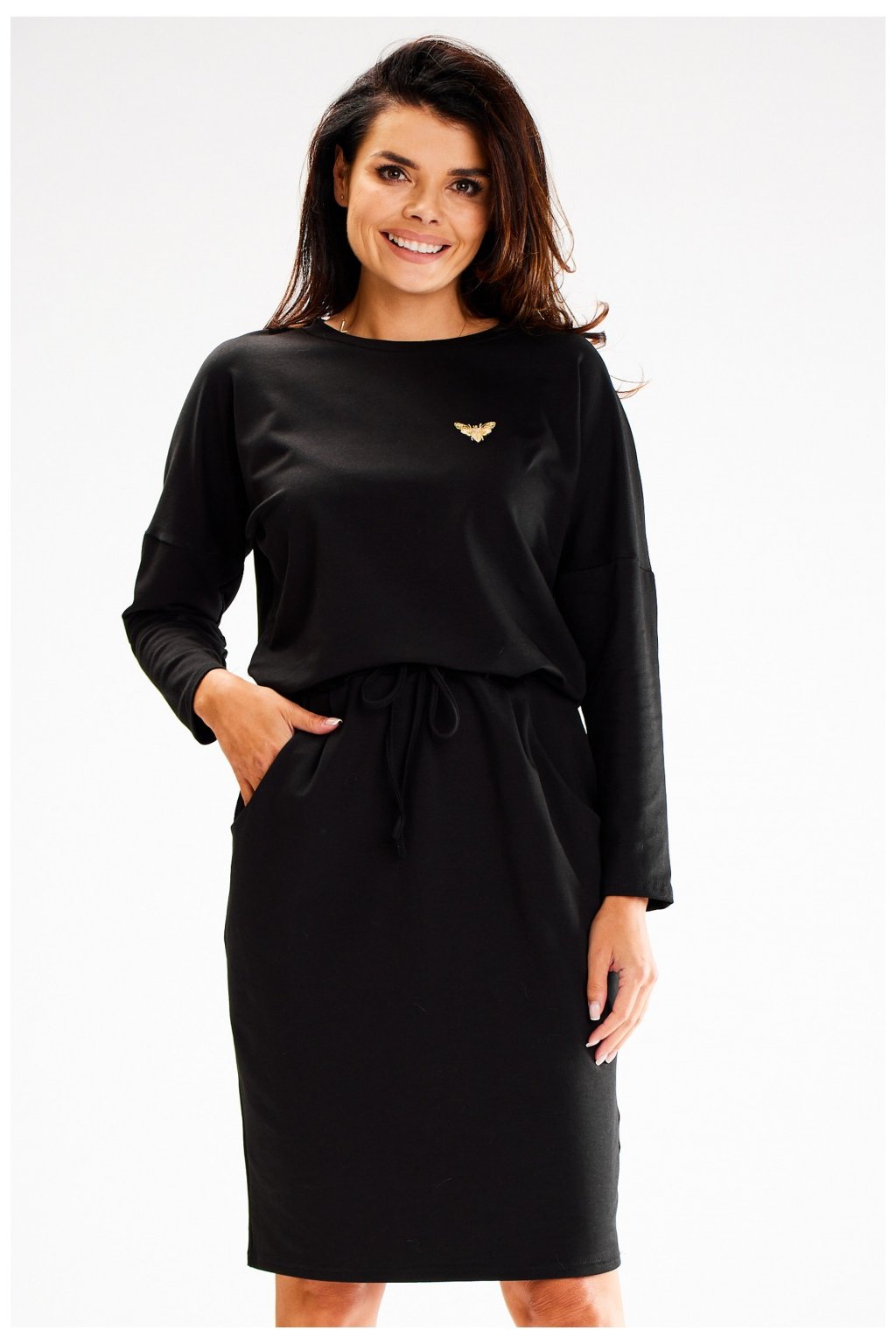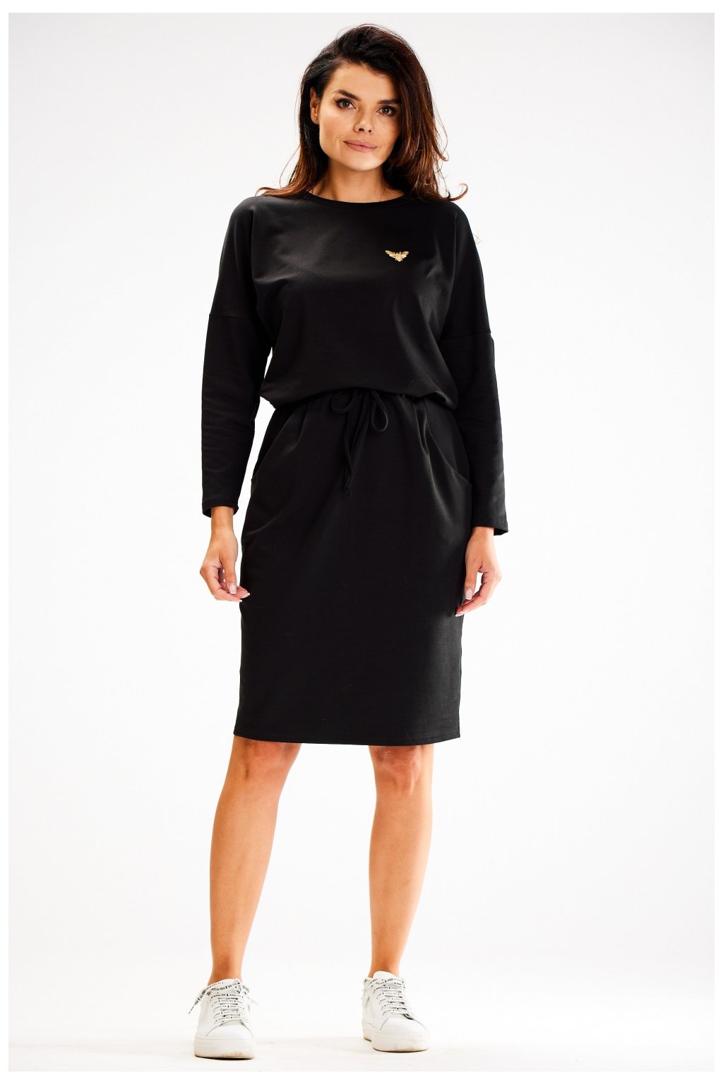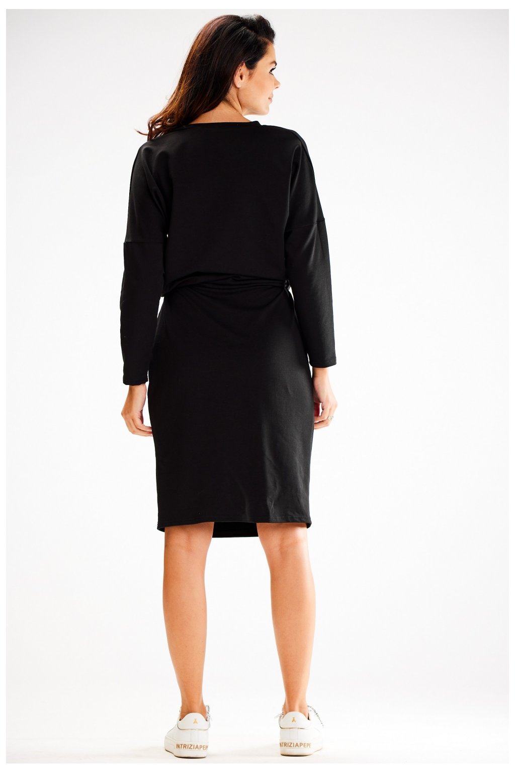 Elegantní asymetrické šaty s 3/4 rukávy, plisovaná prodloužená záda. Šaty nemají kapsy. Návrh ideální pro mnoho příležitostí. …