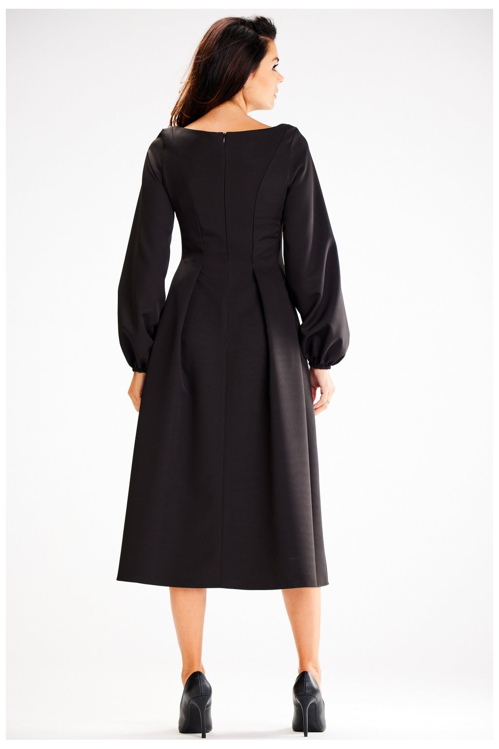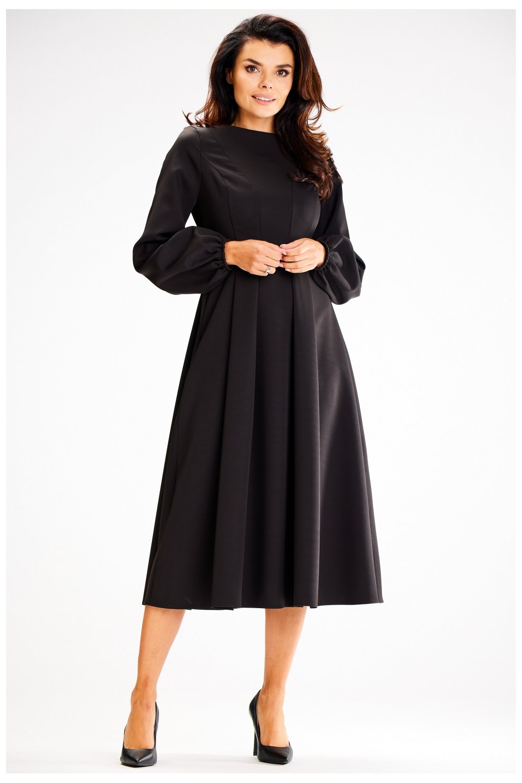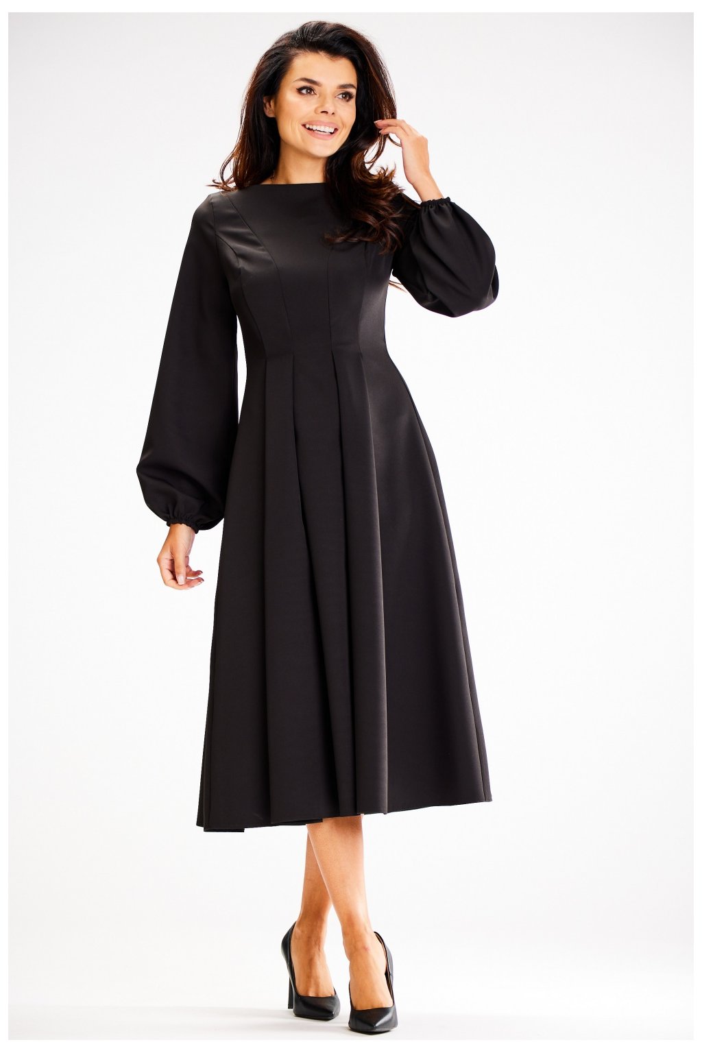 Rozšířené šaty v midi délce s dlouhými rukávy zakončenými gumičkou. Zapínají se vzadu na krytý zip. Elegantní šaty s lodičkovým výstřihem a přiléhavým horním dílem jsou ideální volbou pro nejrůznější setkání.Polyester 95 %