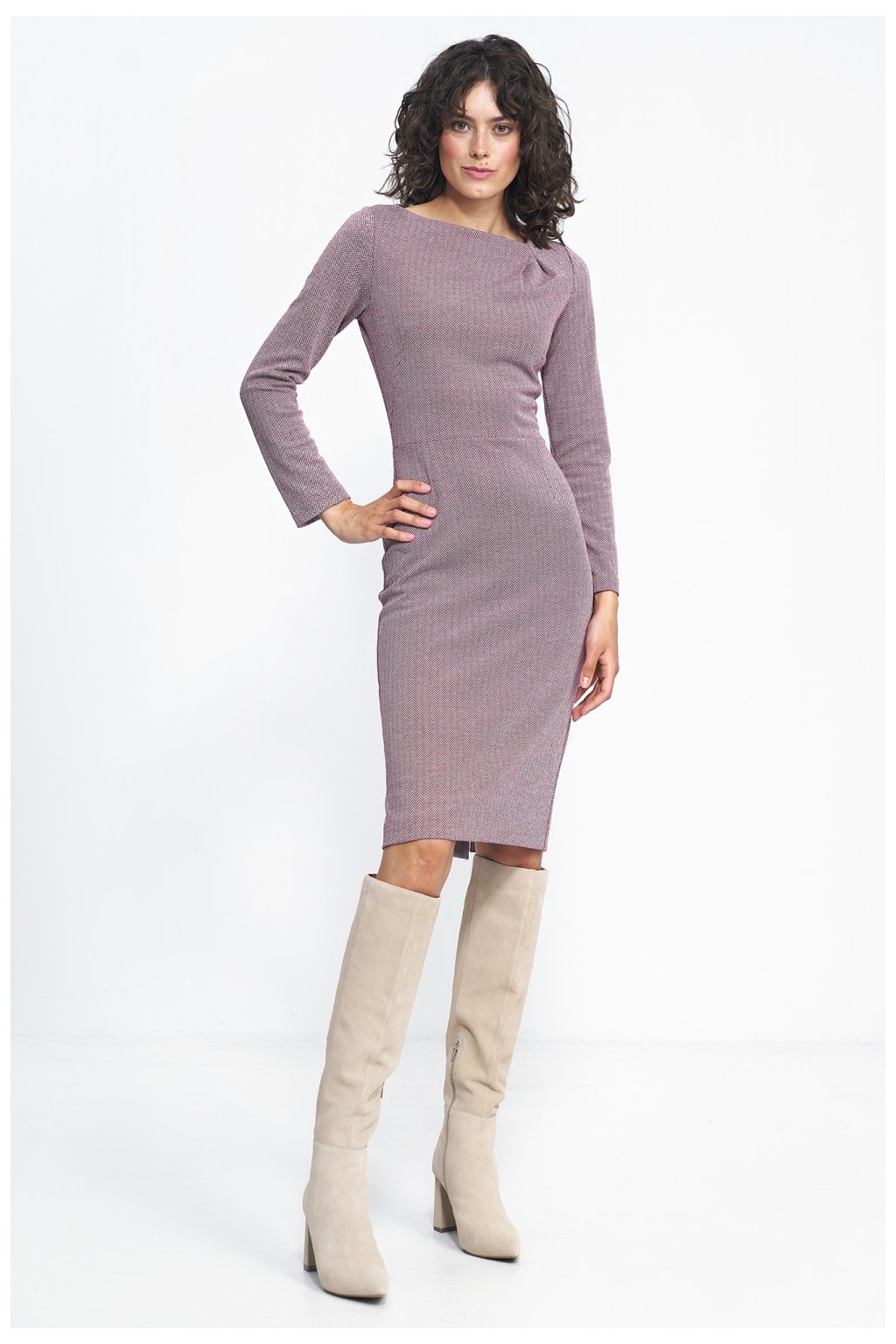 Elegantní šaty z látky příjemné na dotek se záhyby ve výstřihu. Šaty jsou bez podšívky a zapínají se na krytý zip. Šaty dokonale zdůrazňují ženskou siluetu. Vynikající a pohodlná volba pro každodenní nošení do kanceláře.Polyester 30 %