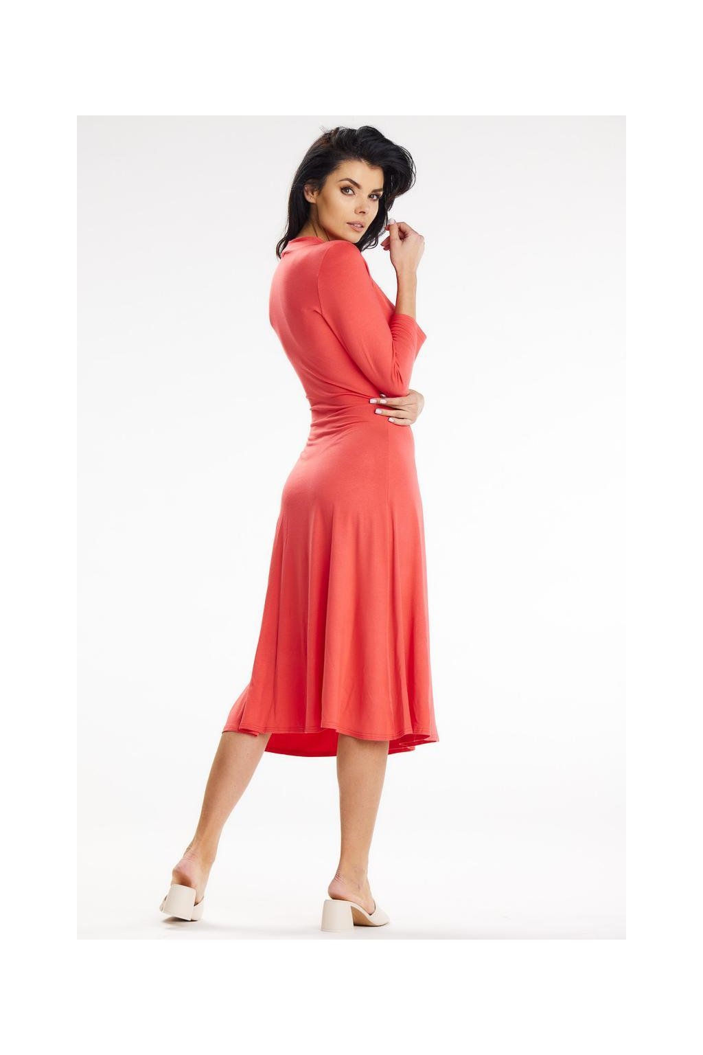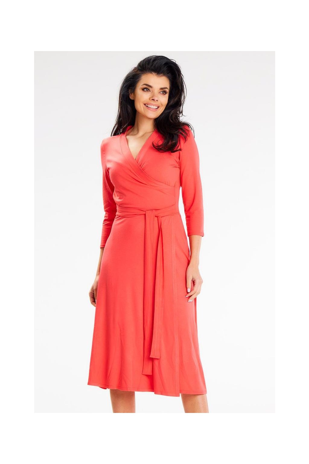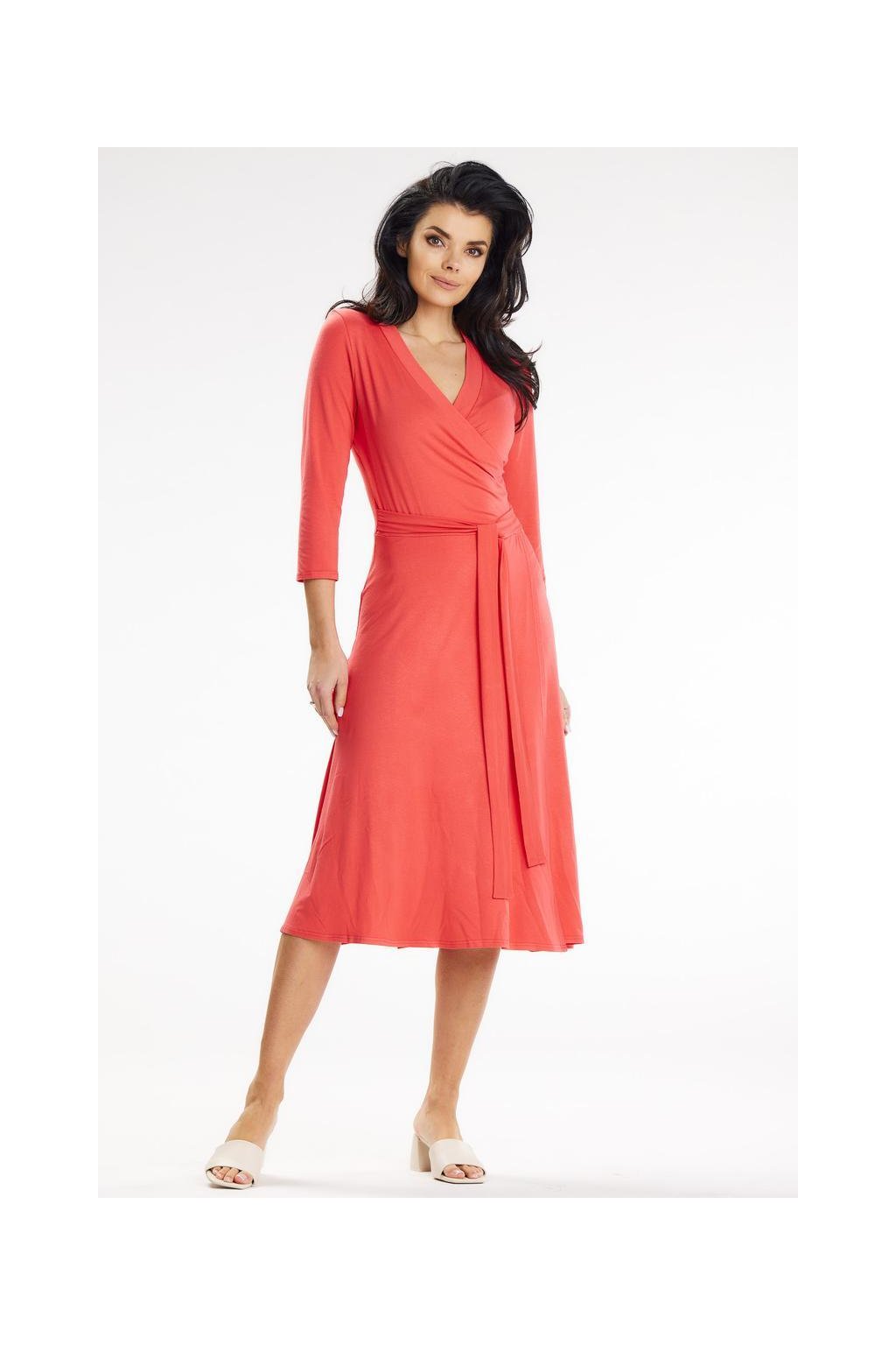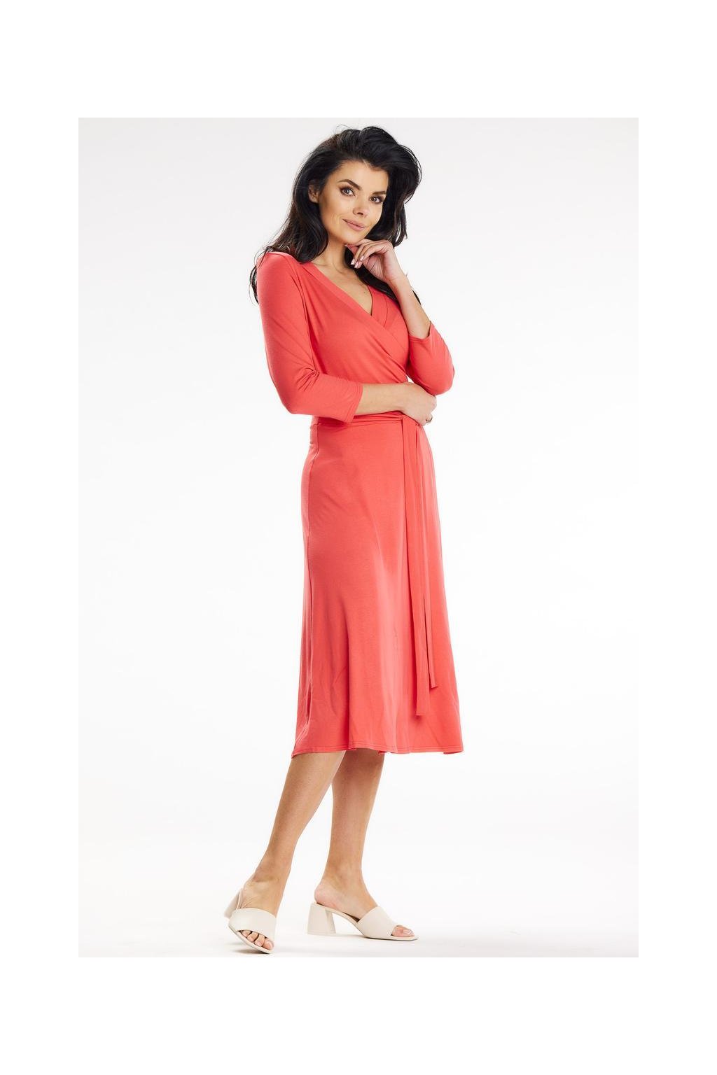 Midi šaty s přiléhavým horním dílem ve tvaru obálky a překrývajícím se spodním dílem. Tento model s páskem na zavázání v pase a 3/4 rukávy je ideální na rande, ale i na rodinnou oslavu.Viskóza 95 %