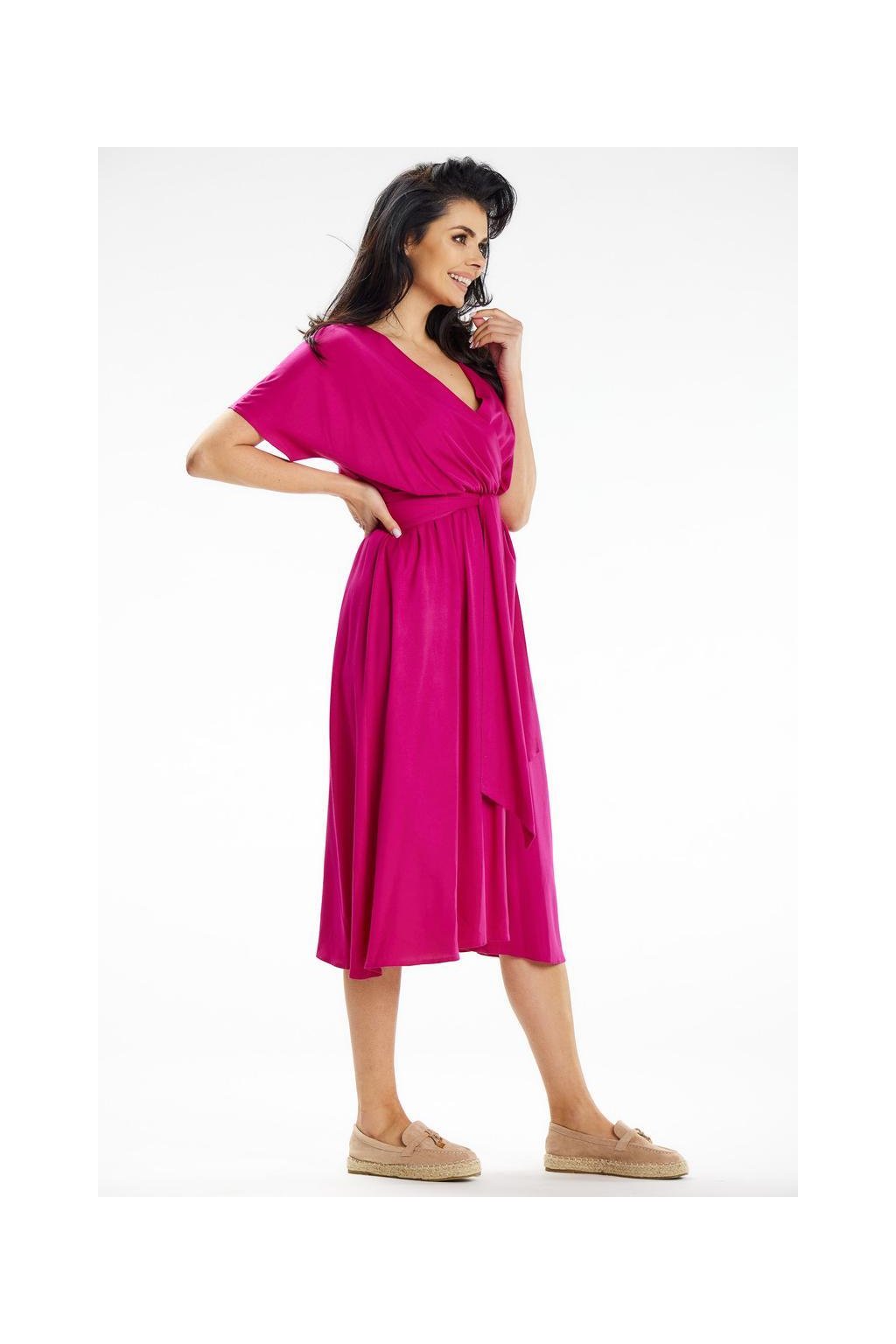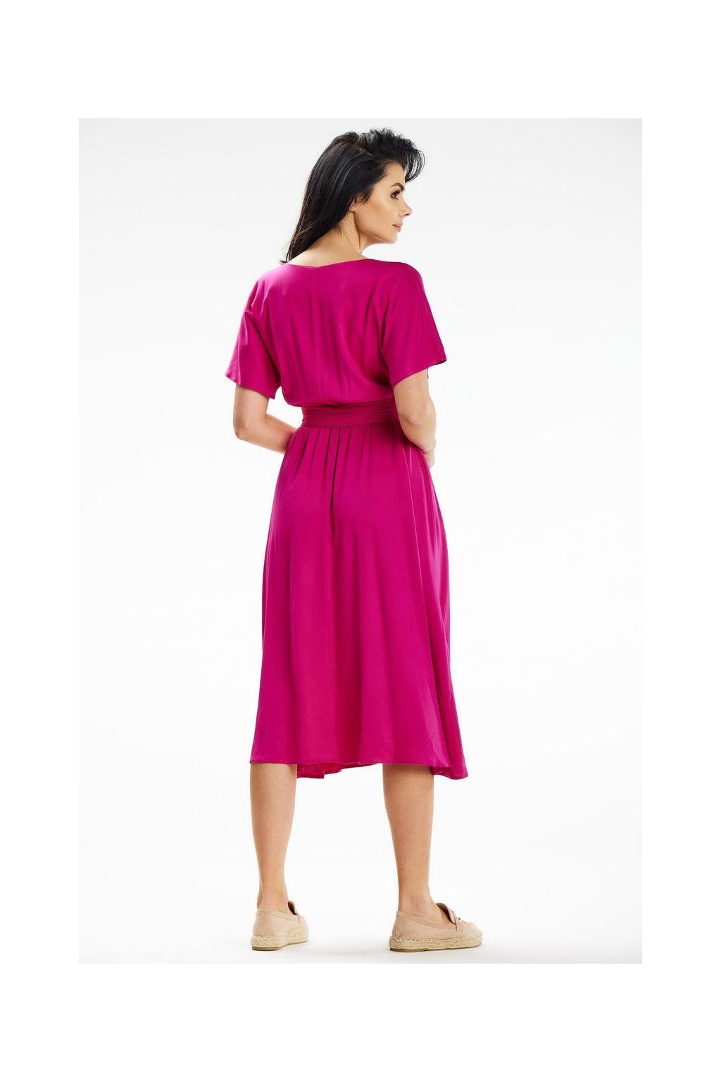 Rozšířené midi šaty s obálkovým vrškem a krátkými kimonovými rukávy. Ideální do práce i na kávu s kamarádkou. Šaty mají v pase šerpu na zavázání, takže zvýrazní přednosti siluety.Viskóza 97 %