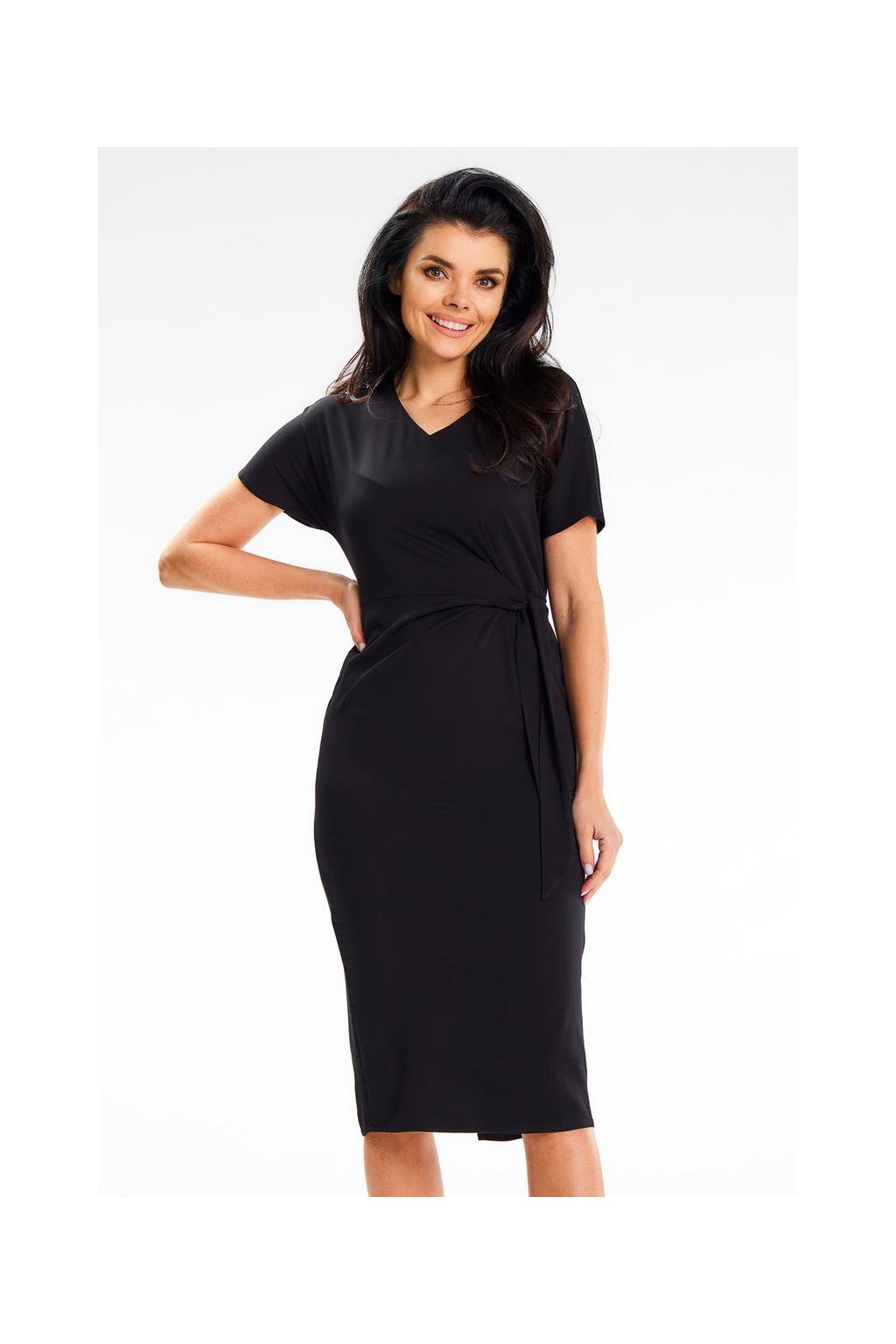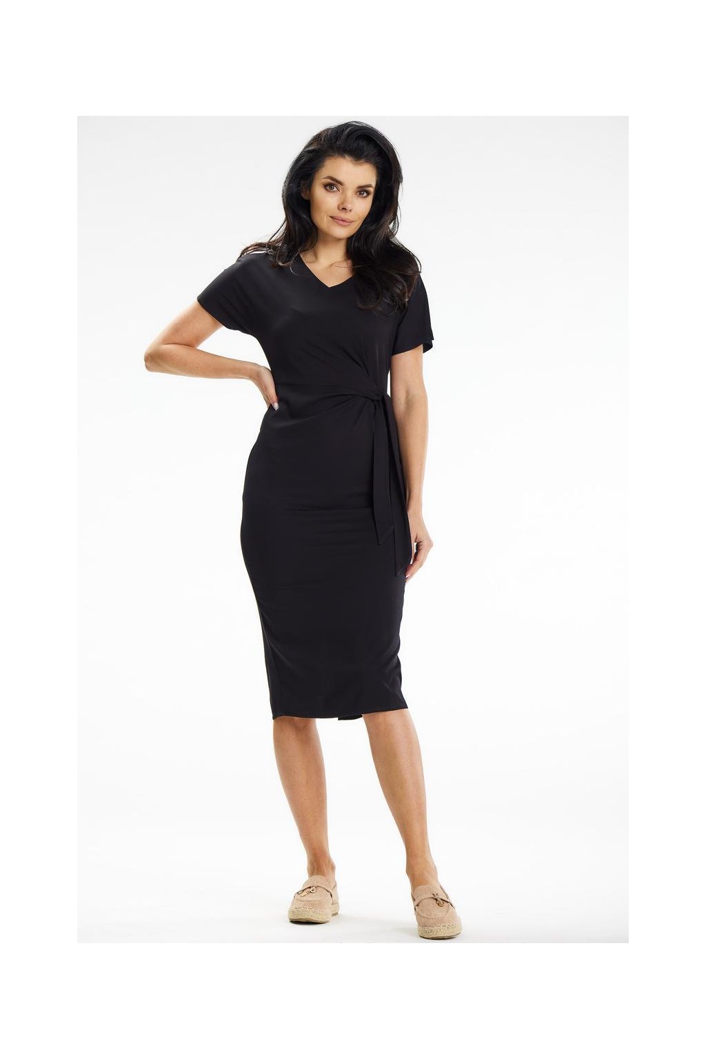 Midi šaty s krátkými rukávy a srdíčkovým výstřihem. Vpředu mají asymetrické vázání. Jsou dobrou volbou do práce, na víkendovou schůzku nebo na kávu.Viskóza 97 %