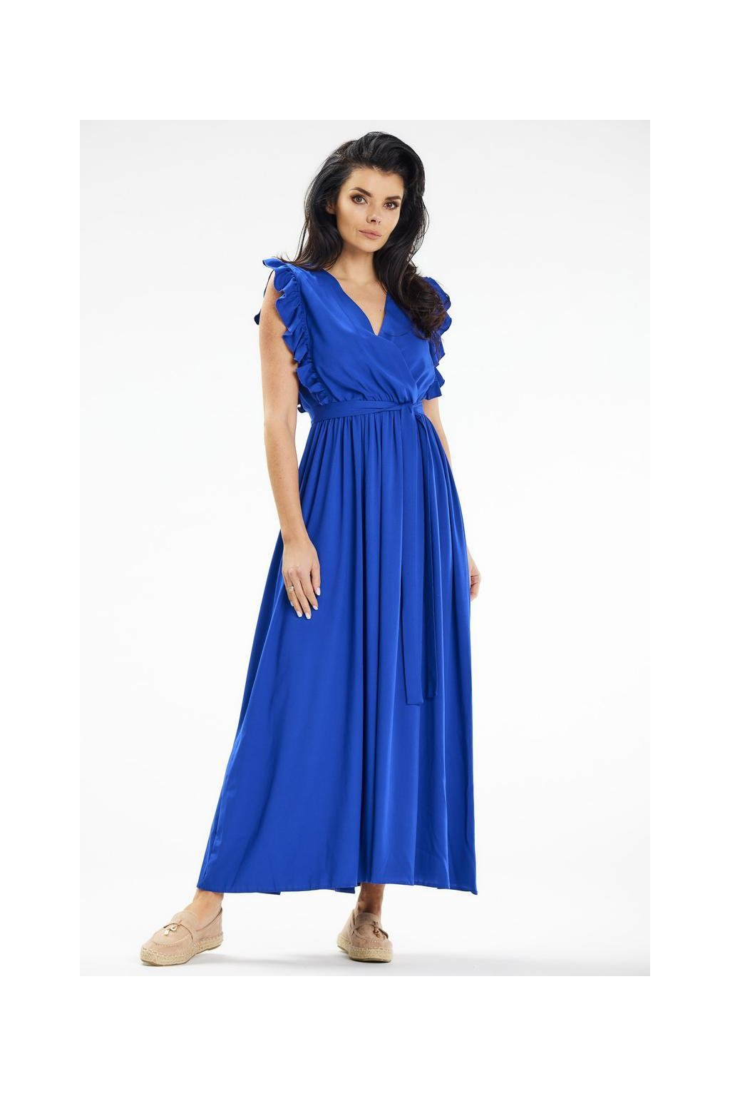 Maxi šaty s obálkovým výstřihem a elastickým pasem. Na ramenou mají volánky a v pase pásek na zavázání. Jsou tou nejlepší volbou na léto. Můžete si je obléknout na procházku po pláži, na rande nebo na schůzku s přáteli do města.Viskóza 97 %