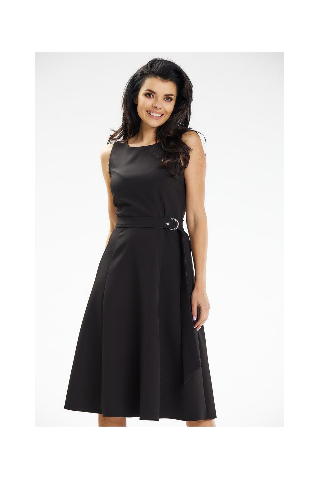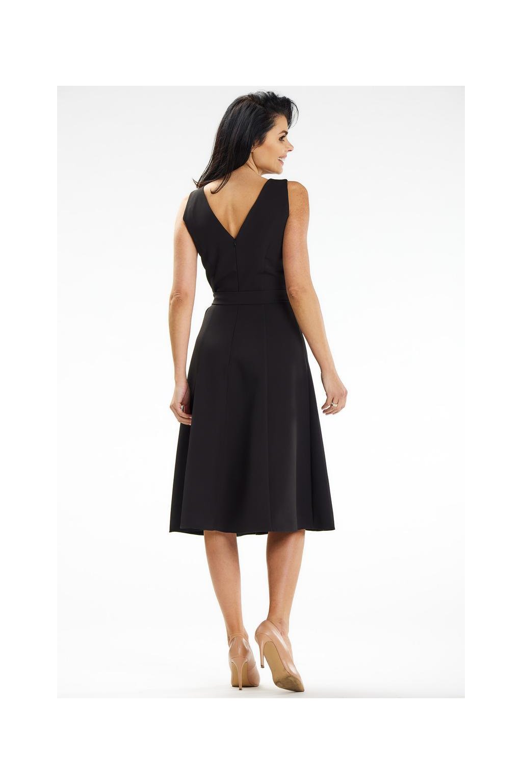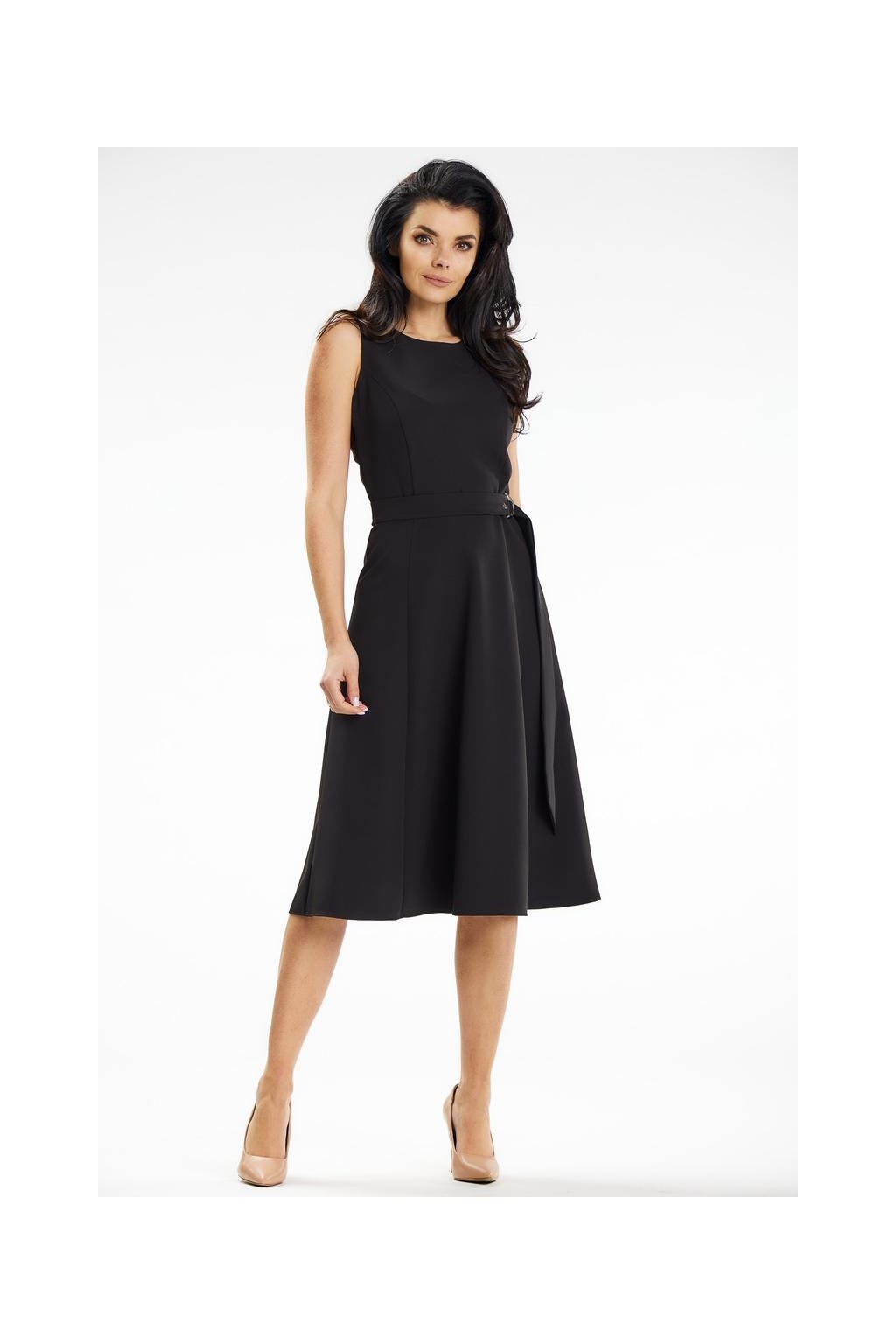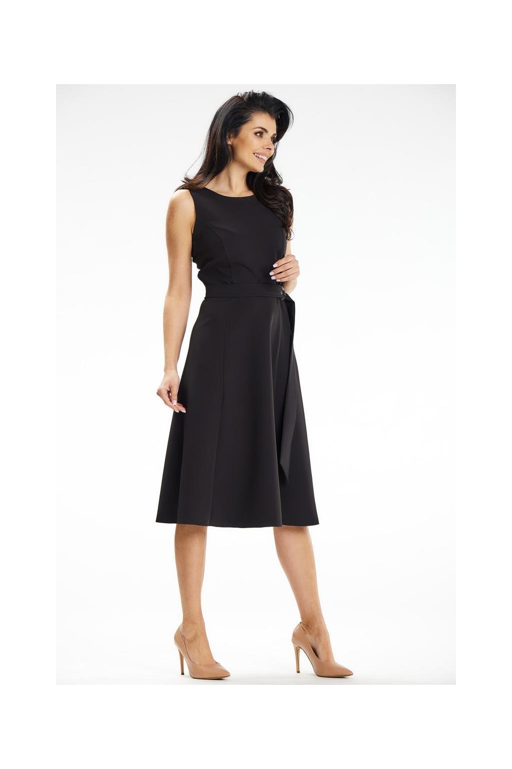 Elegantní midi šaty bez ramínek s lodičkovým výstřihem. Horní část šatů je vypasovaná, zatímco spodní část je mírně rozšířená. V pase mají pásek, který jim dodává na eleganci. Šaty se zapínají na skrytý zip. Ideální pro mnoho příležitostí, včetně narozenin, setkání s přáteli a návštěvy divadla. Vyrobeno v Polsku.Polyester 95 %