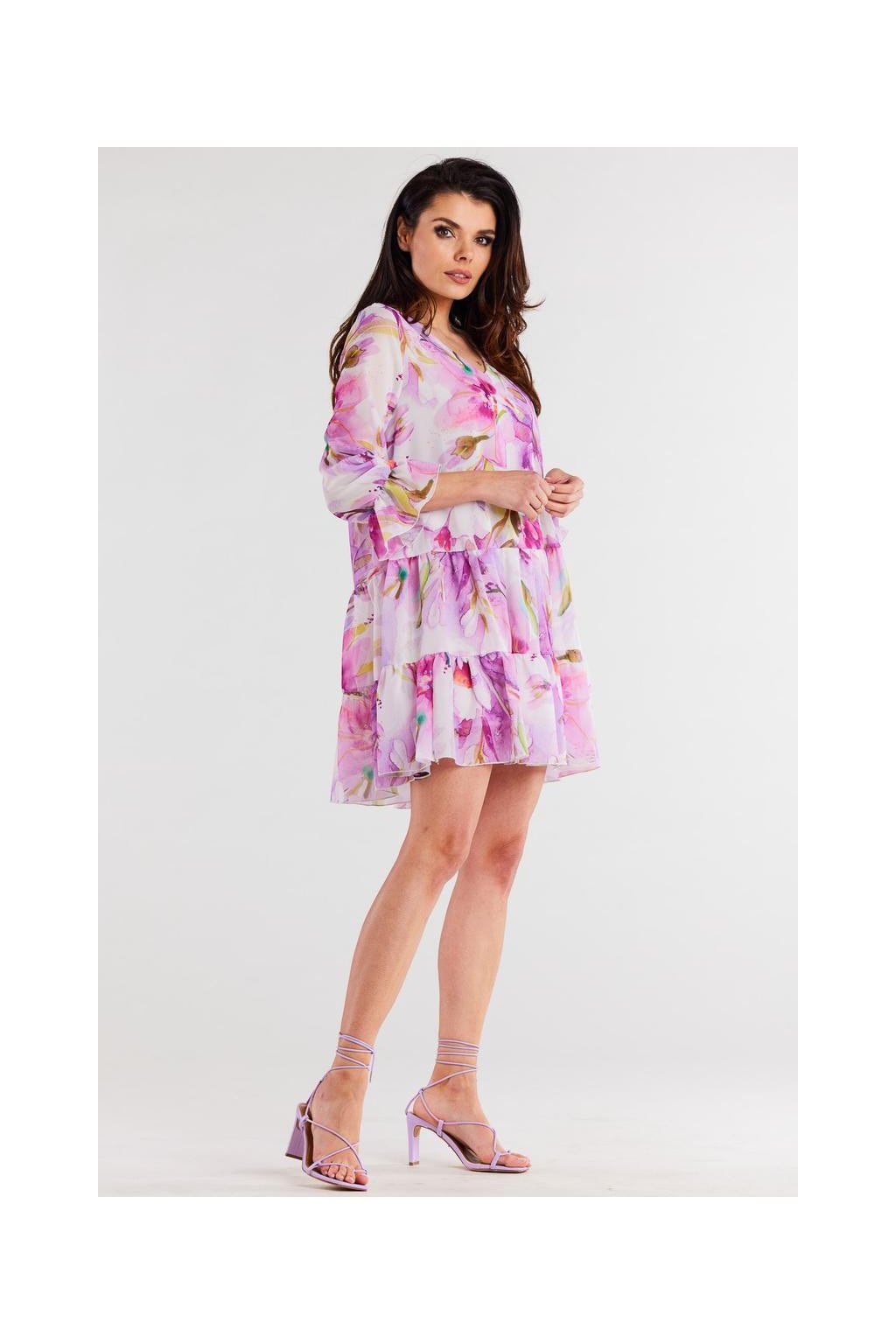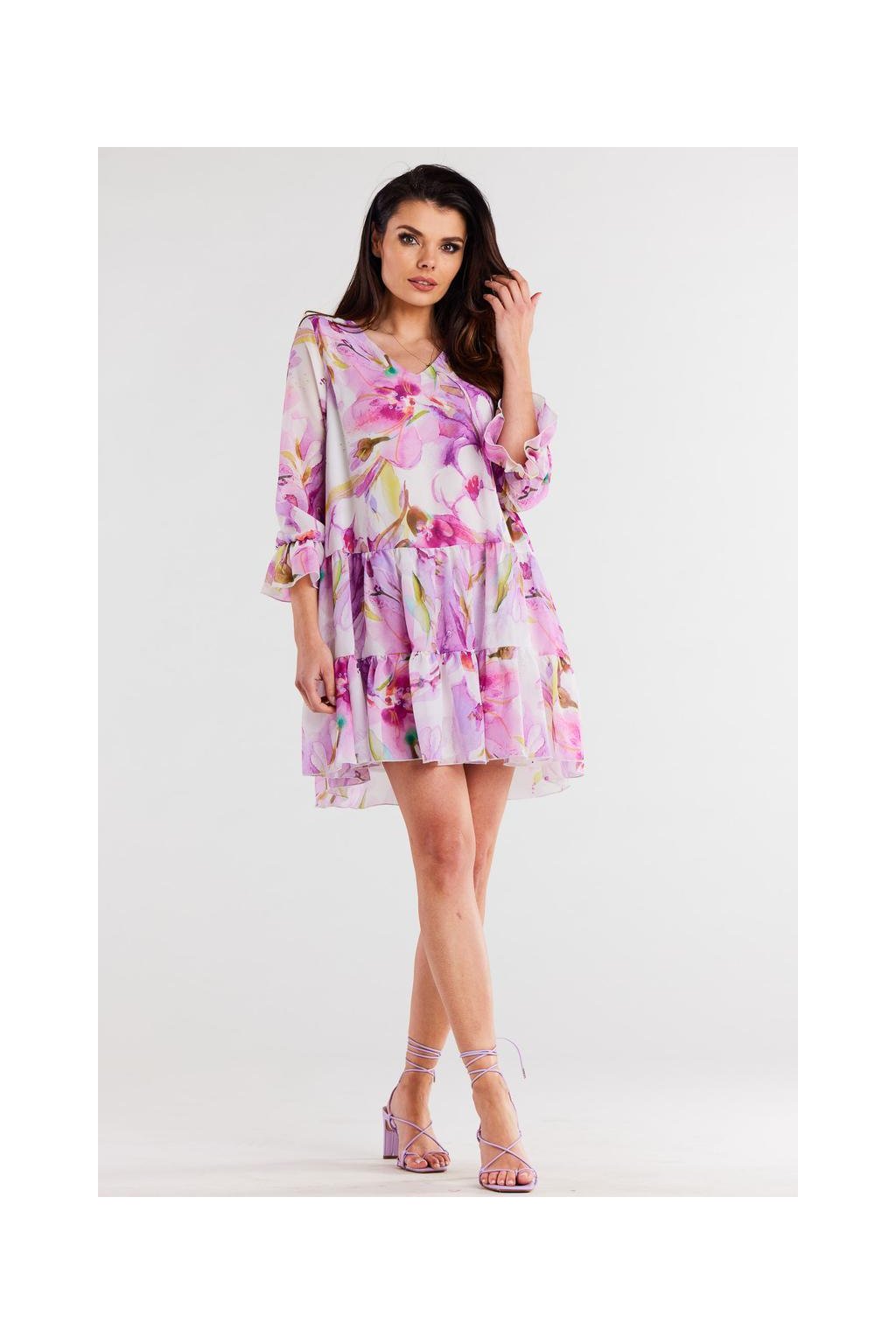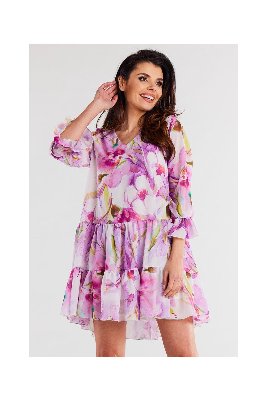 Plisované šifonové šaty s výstřihem a volánky. Sukně má módní délku 7/8 a zapíná se vzadu na krytý zip. Šaty v lahvově zelené barvě. Značka numoco.…