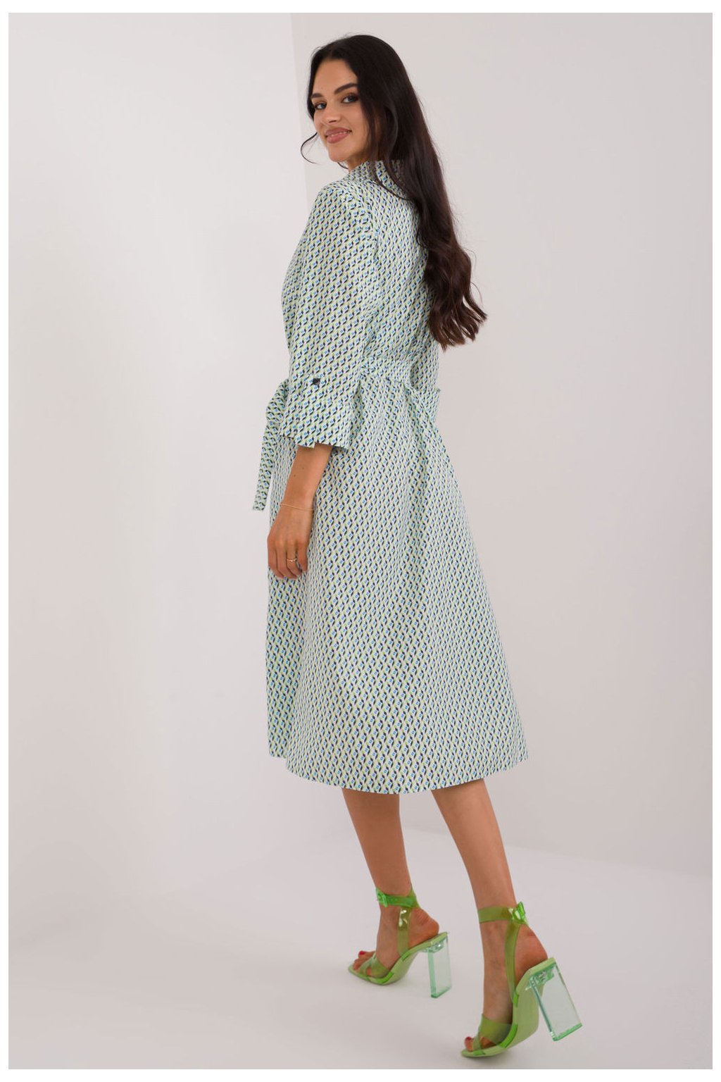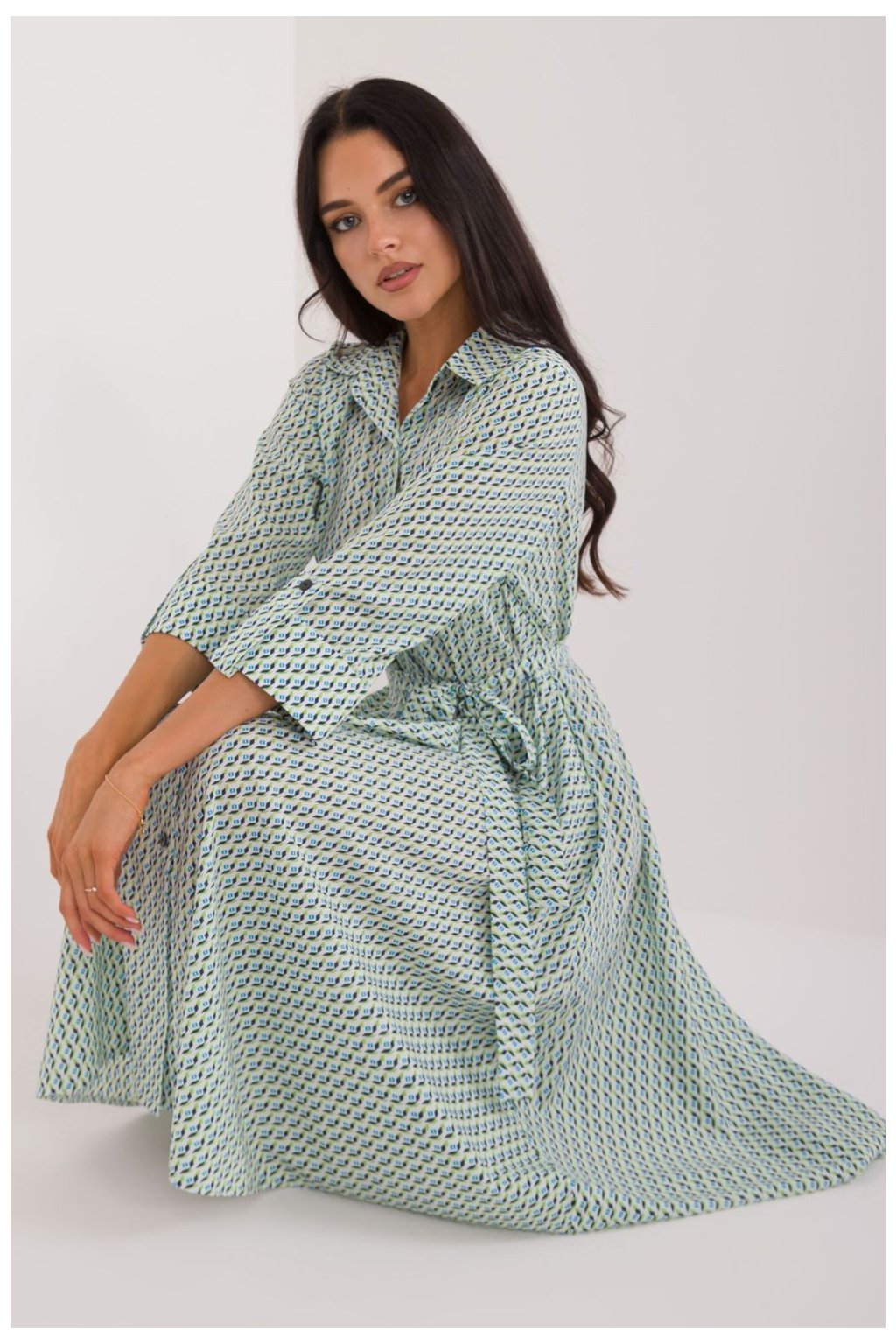 Košilové šaty ideální pro každodenní nošení i do práce. Díky rozšířenému střihu a midi délce jsou pohodlné a elegantní. Tlumený potisk a hlavní materiál polyester jim dodávají univerzální charakter. Tříčtvrteční rukávy a límeček dodávají šatům noblesu, zatímco knoflíky a pásek na zavázání zdůrazňují ženskou siluetu. Díky nakládaným kapsám jsou navíc šaty praktické a funkční pro každodenní nošení.Polyester 75 %
