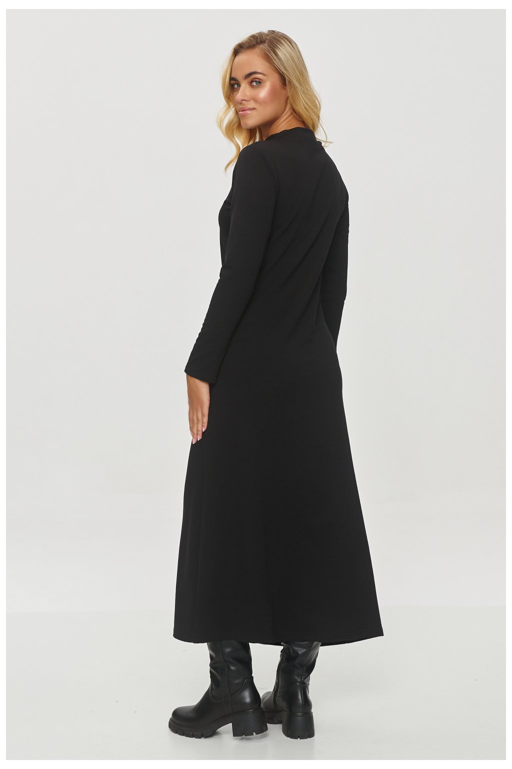 Drážkované šaty vytváří elegantní a minimalistický návrh, který kombinuje jednoduchost s jemnými detaily. Model má midi délku sahající do poloviny lýtek, co jí dodává eleganci a klasický vzhled. Střih je jednoduchý, ale s efektním akcentem v podobě záhybu na levé straně pasu, který šatě dodá tvar a zdůrazní siluetu. Model má dlouhé rukávy, které zajistí pohodlí a jsou vhodné pro chladnější dny. Vysoký límec dodává šatě eleganci a zároveň ji udržuje v casual stylu. Drapování v oblasti pasu je jemný detail, který jí dodává dynamiku a lehkost, subtilně zdůrazňující ženské tvary. Díky neutrálním barvám lze šaty snadno sladit s různými doplňky, jak v elegantním, tak v casual stylu. Model je ideální pro ženy, které si cení pohodlí, jednoduchosti, ale zároveň neodříkají ženskému stylu. Můžete ji sladit se sportovní obuví a získat outfit s moderním a sportovním charakterem. Tato stylizace se hodí na každý den, na setkání s přáteli nebo na procházky.Elastan 5 %