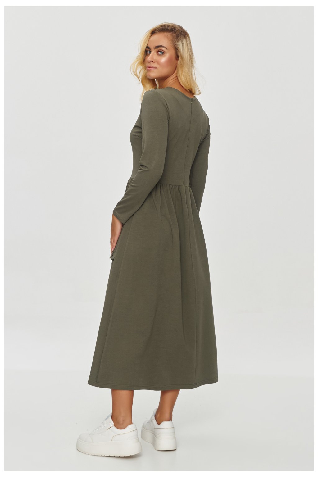Rozklošené šaty jsou skvělou volbou pro lidi, kteří ocení spojení stylu a funkčnosti. Model má klasický, ženský střih s midi délkou a rozklošeným dnem. Vyrobeno z měkkého, pohodlného materiálu, který se skvěle hodí pro každodenní nošení. Šaty mají dlouhé rukávy, což z nich dělá ideální volbu na chladnější dny. Oddělení v pasu dává efekt jemného mačkání, které zdůrazňuje siluetu a dodává šatům šarm. Charakteristickým prvkem jsou velké, nášivkové kapsy na přední straně, navíc zdobené elegantním pozlaceným detailem, který nejen dodává styl, ale také plní praktickou funkci. Tento model kombinuje pohodlí a módní design a je ideální volbou na různé příležitosti.Elastan 5 %