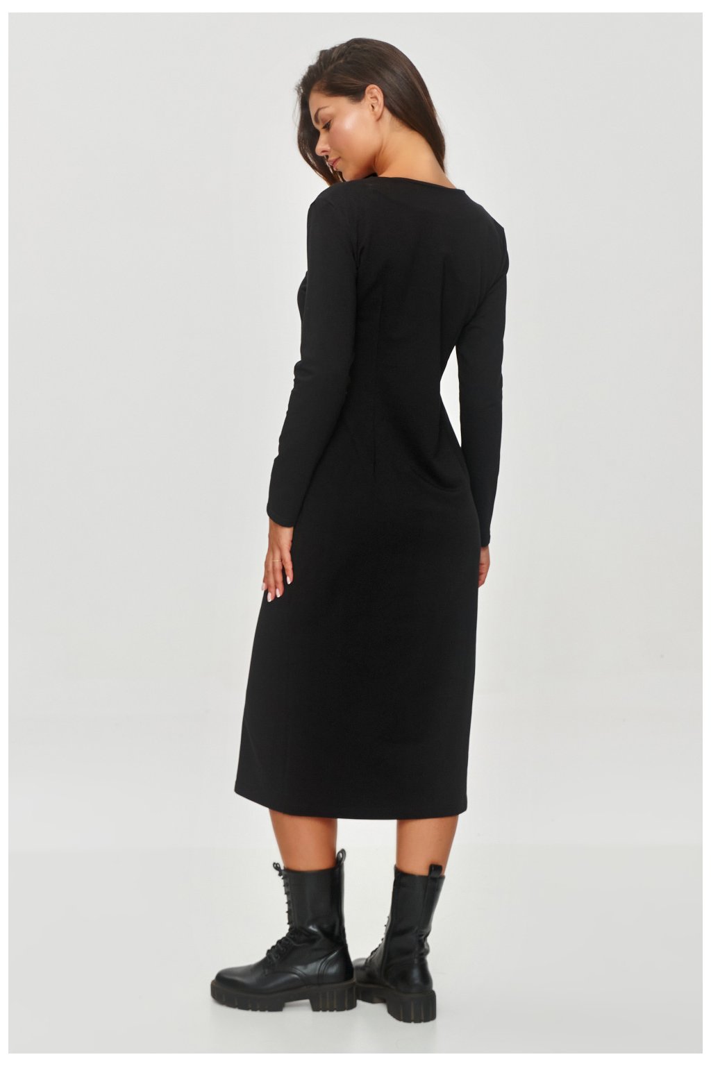 Dresové šaty jsou elegantní, ale zároveň jednoduchá nabídka na každý den, která kombinuje minimalismus s trochou stylu. Model má jednoduchý, přiléhající střih, který zdůrazňuje siluetu, ale zároveň zůstává pohodlný. Délka šatů sahá do poloviny lýtek, což jim dodává klasický charakter. Měkký a elastický materiál zajišťuje pohodlí nošení po celý den. Šaty mají dlouhé rukávy, ideální pro chladnější dny. Výstřih má tvar písmene V, který opticky prodlužuje krk a dodává eleganci. Na přední straně šatů se nachází subtilní rozštěp u spodu, který jim dodává lehkost a umožňuje volnost pohybu. Můžete je kombinovat s bílými teniskami, což dodá celkovému vzhledu sportovní, ale stále elegantní vzhled, nebo nosit s botkami nebo balerínami, aby se dosáhlo formálnějšího efektu. Tyto šaty jsou ideální volbou na každodenní vycházky, setkání s přáteli nebo do práce. Díky svému jednoduchému střihu a elegantním detailům se snadno stylizují na různé příležitosti.Elastan 5 %