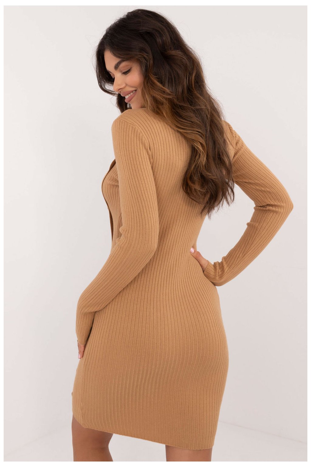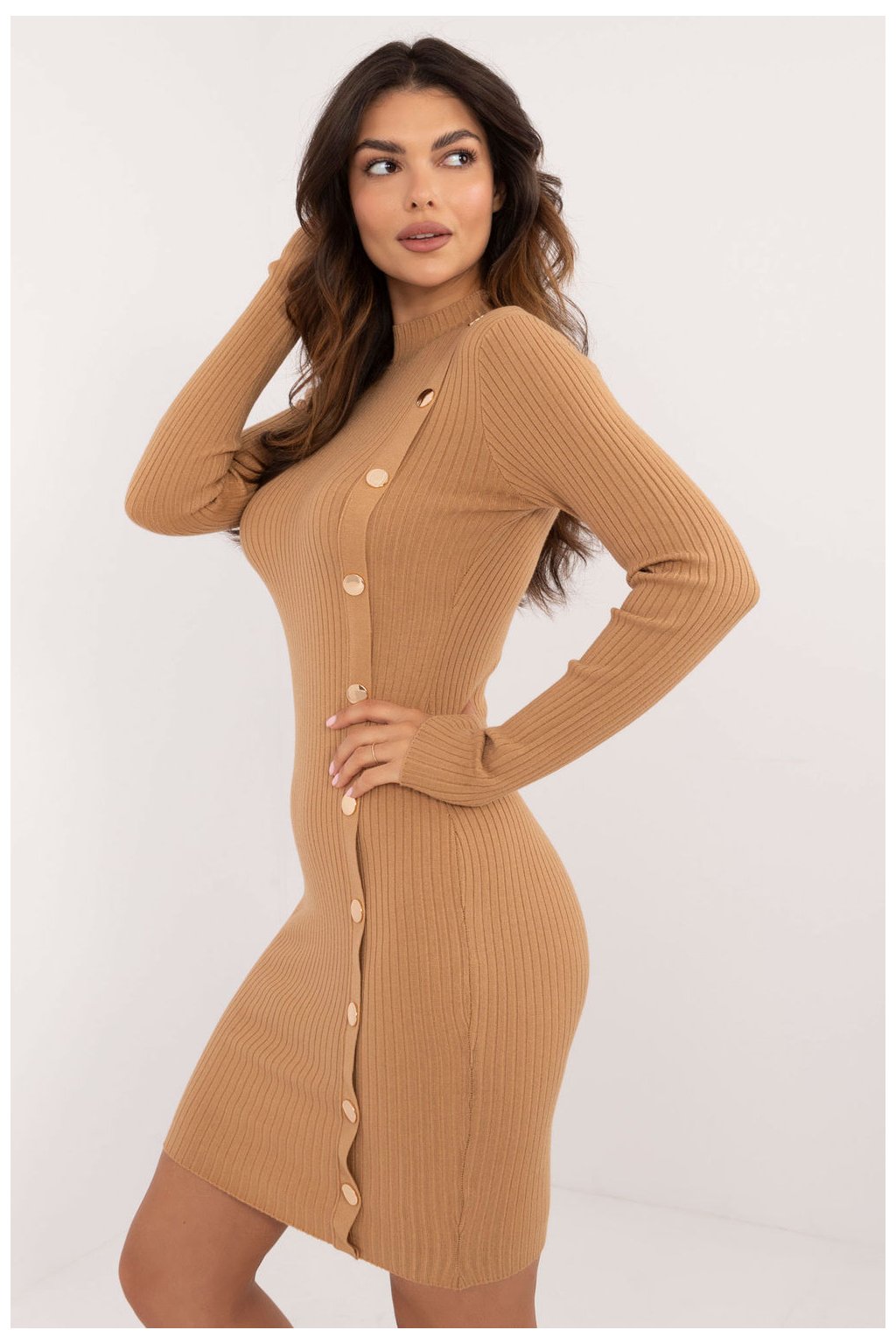 Tyto pletené šaty ve tvaru tužky s polovičním rolákem jsou ideální volbou pro každodenní nošení i do práce. Jsou vyrobeny z pružné a na dotek příjemné směsi viskózy, polyamidu a polyesteru a poskytují celodenní pohodlí. Šaty mají délku ke kolenům a žebrovaná tkanina jim dodává styl a jemně zvýrazňuje siluetu. Dlouhé rukávy a ozdobné knoflíky, které se táhnou po celé délce, dodávají šatům elegantní a moderní nádech. Šaty jsou ideální pro nošení v chladnějších dnech a dobře se kombinují s klasickými i ležérnějšími doplňky.Polyester 29 %