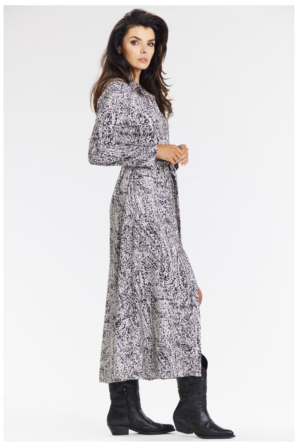Košilové maxi šaty. Objevte novou definici elegance v našich košilových maxi šatech, které jsou ideální pro každou příležitost, od práce až po schůzky. Ležérní styl se snoubí s funkčností, zatímco šerpa na zavázání v pase jim dodává na půvabu. Dlouhé rukávy, zapínání na knoflíky a černobílý vzor vnášejí do každodenního stylingu moderní nádech. Šaty byly ušity z vysoce kvalitní látky pro pohodlné nošení. Nastavitelné rukávy a zapínání na knoflíky dodávají šatům všestrannost a jsou ideální pro všechna roční období. U Šaty jsou ideální pro každodenní nošení, do práce i na schůzky, díky stahovací šňůrce v pase se přizpůsobí siluetě.Polyester 95 %