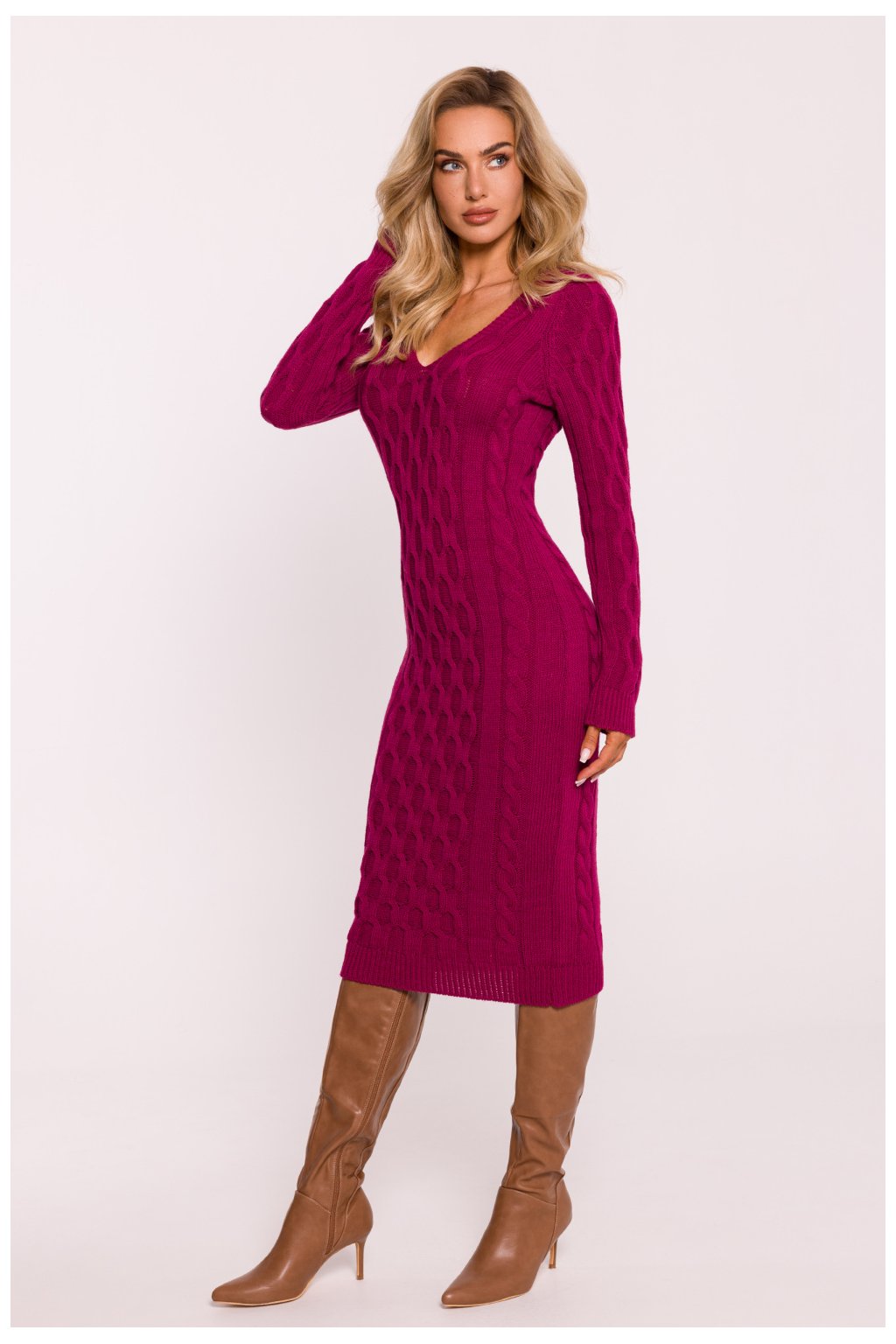Svetrové šaty vypasovaného střihu z příze s pestrou vazbou, která jim dodává jedinečnou strukturu a měkkost. Mají dlouhé rukávy a výstřih do V, který zdůrazňuje krk a dodává mu eleganci. Midi délka nabízí pohodlí a všestrannost, ideální pro různé příležitosti. Celý kousek byl navržen a ušit v Polsku, což zaručuje vysokou kvalitu zpracování a pozornost věnovanou detailům.Nylon 15 %