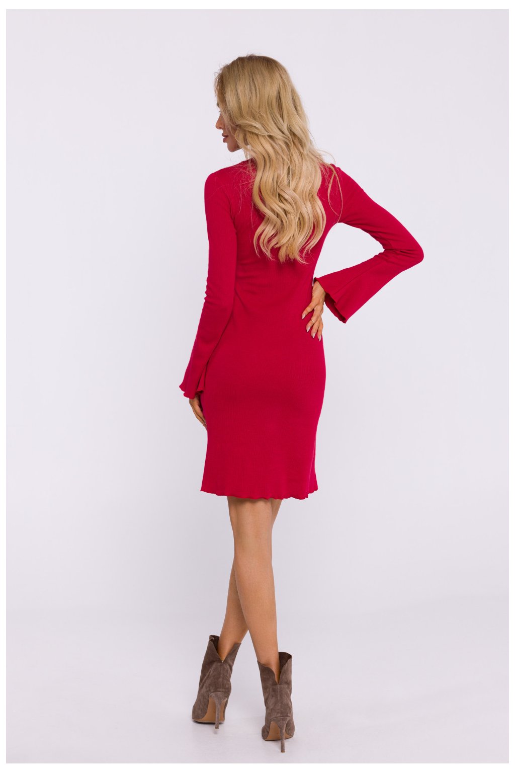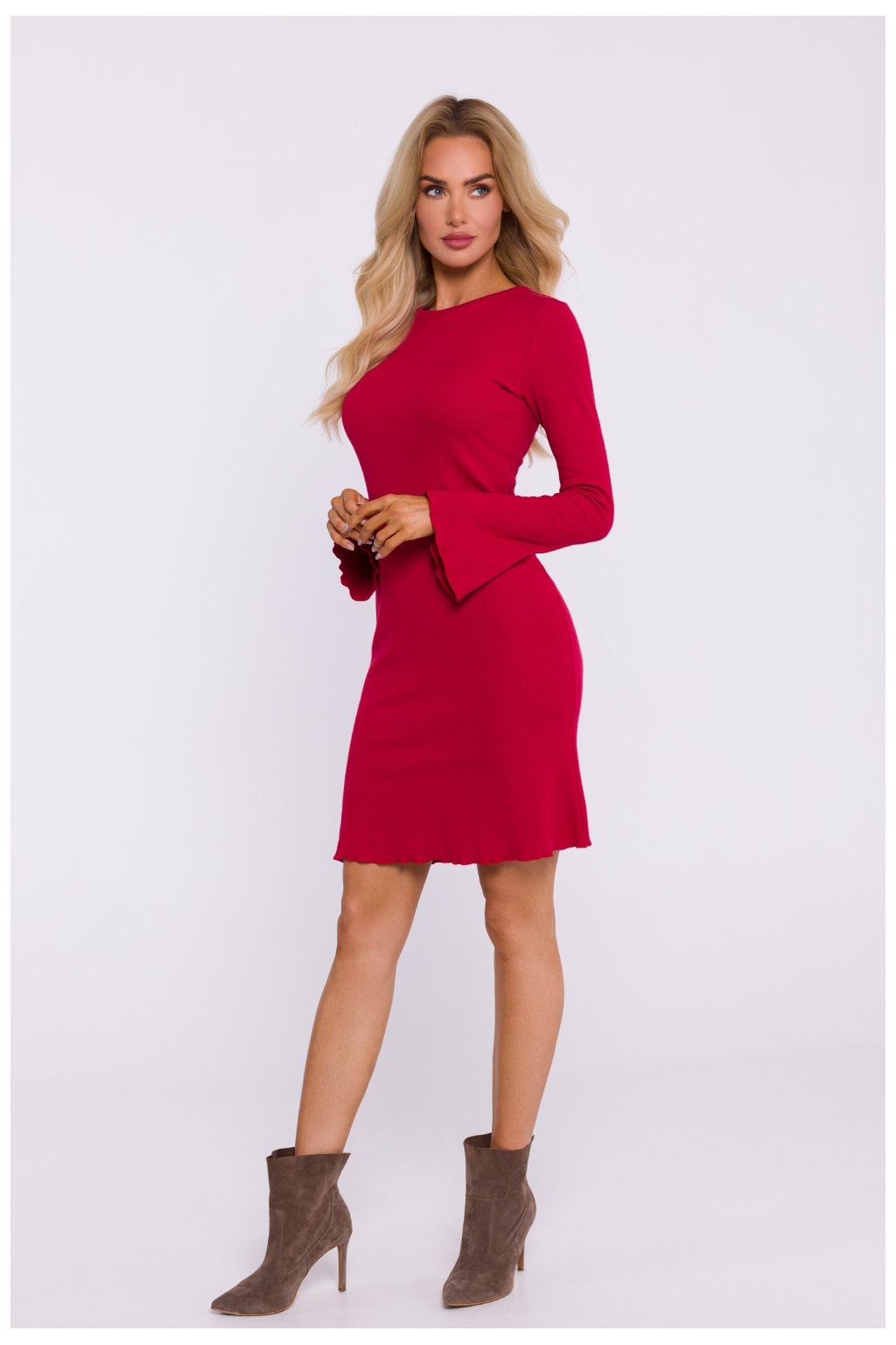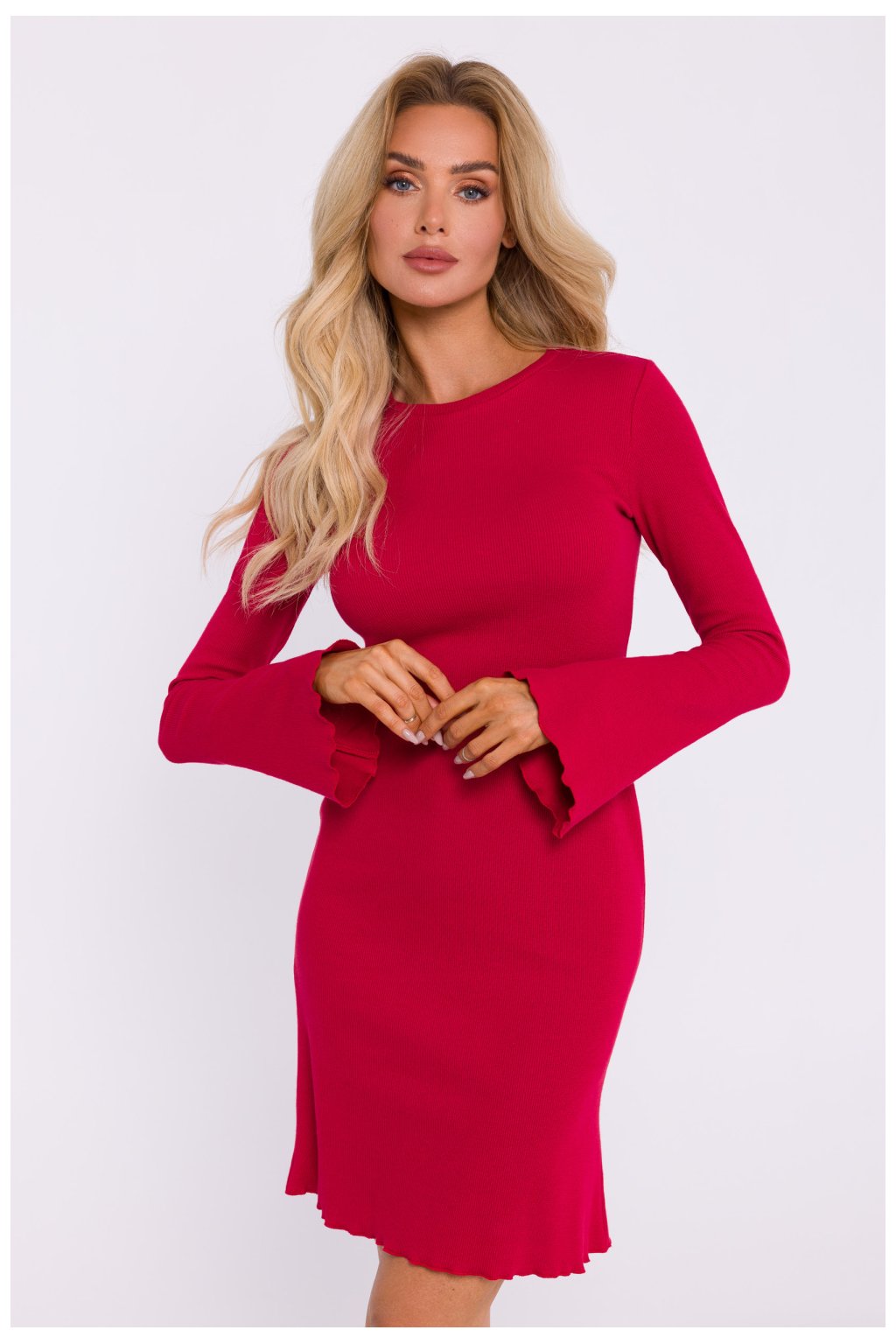 Tyto šaty s dlouhými rukávy, vyrobené z žebrovaného bavlněného úpletu, dokonale padnou postavě a zdůrazní tvar přesýpacích hodin. Klasický střih zajišťuje pohodlné nošení, zatímco ozdobný lem na spodní části dodává šatům jemnou eleganci. Šaty se nosí přes hlavu, jsou praktické a pohodlné a díky délce ke kolenům se hodí jak pro každodenní, tak pro slavnostnější příležitosti. Šaty byly navrženy a ušity v Polsku, což zaručuje vysokou kvalitu a pečlivé zpracování.Elastan 5 %