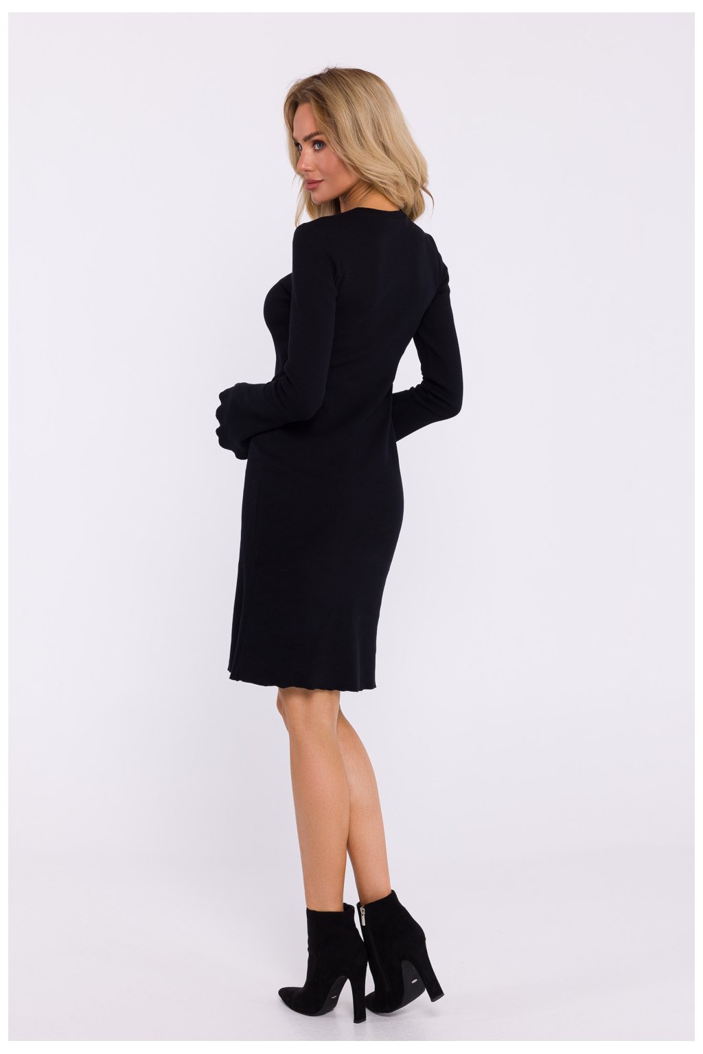 Tyto šaty s dlouhými rukávy, vyrobené z žebrovaného bavlněného úpletu, dokonale padnou postavě a zdůrazní tvar přesýpacích hodin. Klasický střih zajišťuje pohodlné nošení, zatímco ozdobný lem na spodní části dodává šatům jemnou eleganci. Šaty se nosí přes hlavu, jsou praktické a pohodlné a díky délce ke kolenům se hodí jak pro každodenní, tak pro slavnostnější příležitosti. Šaty byly navrženy a ušity v Polsku, což zaručuje vysokou kvalitu a pečlivé zpracování.Elastan 5 %