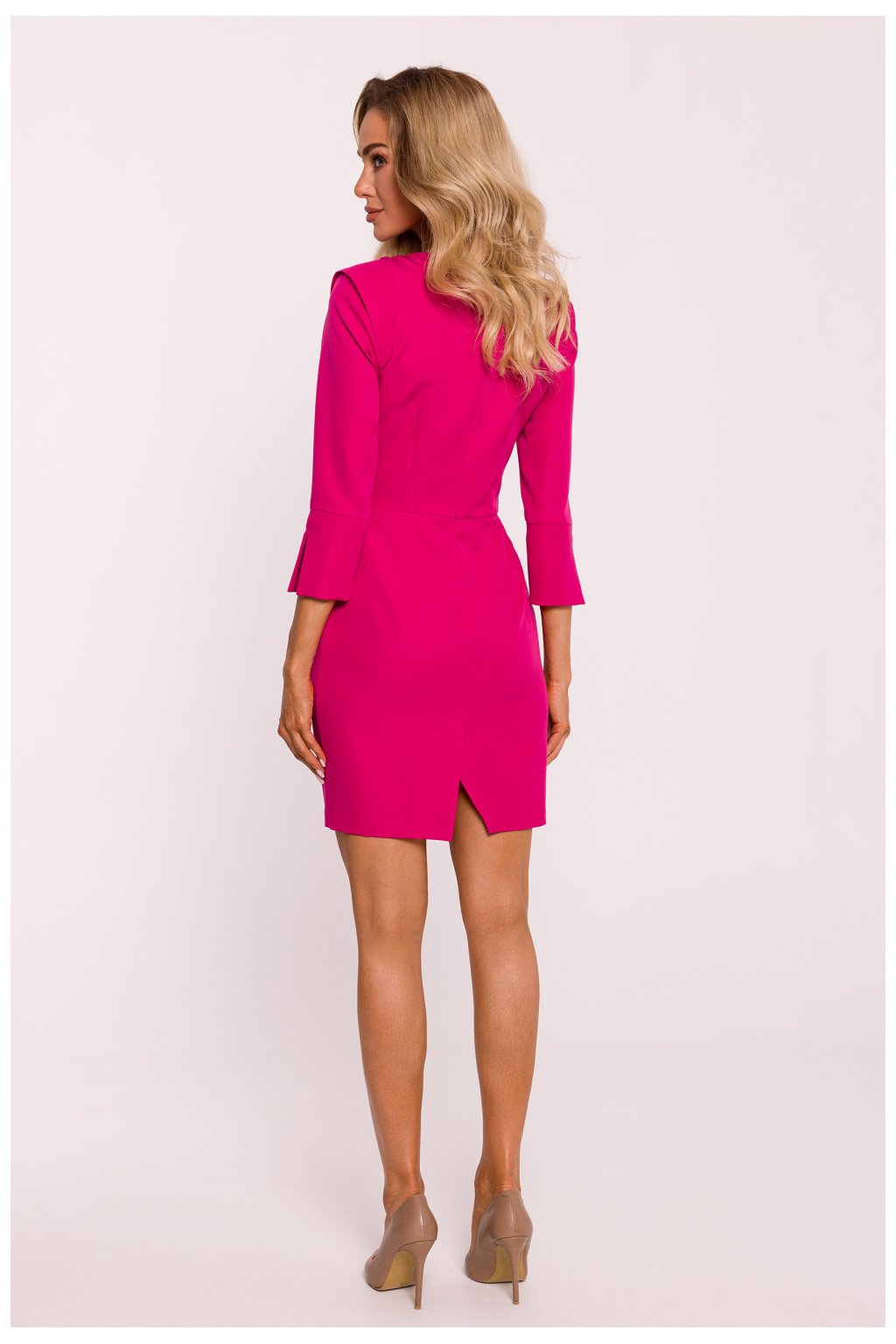 Mini šaty střižené v pase, vyrobené z vysoce kvalitní látky pro elegantní vzhled a pohodlné nošení. Rukávy v délce 7/8 mají ve spodní části jemné rozparky a ozdobnou vsadku na rameni, která dodává šatům jedinečný nádech. Šaty se vzadu zapínají na krytý zip a rozparek ve spodní části zajišťuje volnost pohybu. Model nemá podšívku, takže je lehčí a ideální pro různé příležitosti. Šaty byly navrženy a ušity v Polsku, což zaručuje nejvyšší kvalitu a smysl pro detail.Polyester 95 %