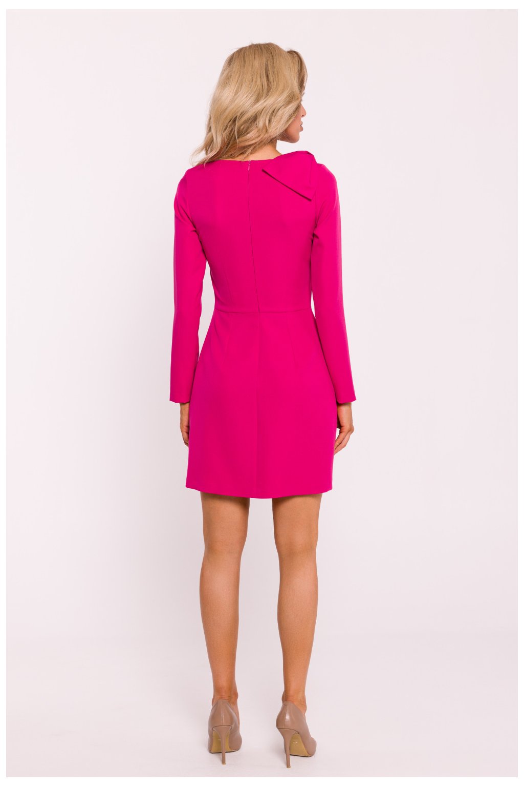 Mini šaty střižené v pase, vyrobené z elegantní látky, která dokonale sedí na postavě. Jemný rozparek vpředu dodává šatům jemnou smyslnost, zatímco dlouhé rukávy s ozdobnou mašlí na jednom rameni vnášejí do šatů stylový a ženský nádech. Šaty se vzadu zapínají na krytý zip, který působí hladce a esteticky. Model nemá podšívku, takže je lehký a ideální pro různé příležitosti. Šaty byly navrženy a ušity v Polsku a vynikají vysokou kvalitou a precizním zpracováním.Polyester 95 %