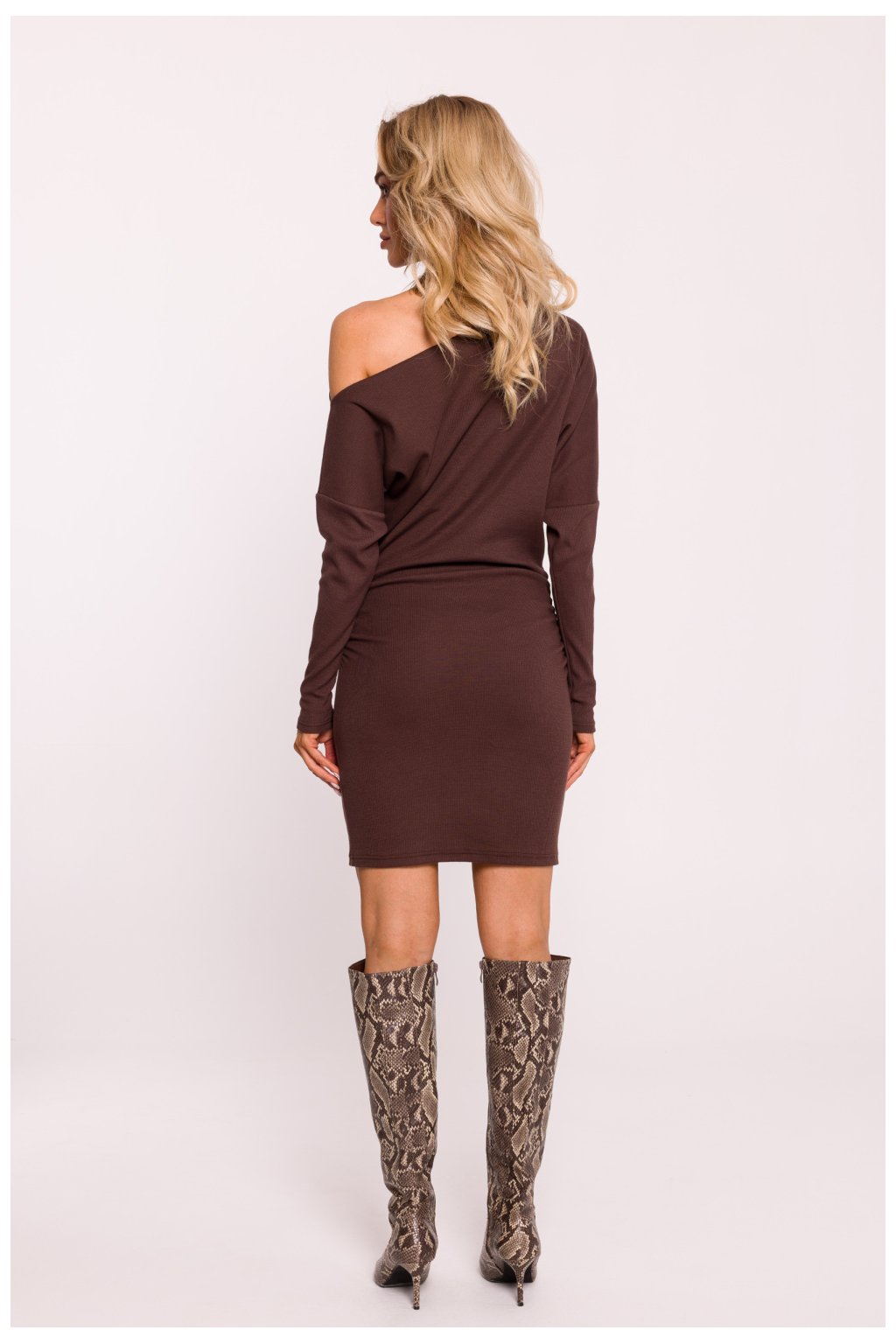 Tyto stylové mini šaty z žebrovaného bavlněného úpletu kombinují moderní design a pohodlí. Jejich vypasovaný střih krásně zvýrazňuje siluetu a provedení přes ramena zajišťuje snadné nošení. Šaty se vyznačují řasením na boku, které dodává originalitu a umožňuje mírně volný vršek pro ležérnější, lehce nonšalantní vzhled. Dlouhé rukávy a výstřih spadající přes jedno rameno vytvářejí smyslný, asymetrický efekt. Je navržen a ušit v Polsku, což zaručuje nejvyšší kvalitu materiálů a zpracování. Ideální pro zvláštní příležitosti i každodenní styling.Elastan 5 %