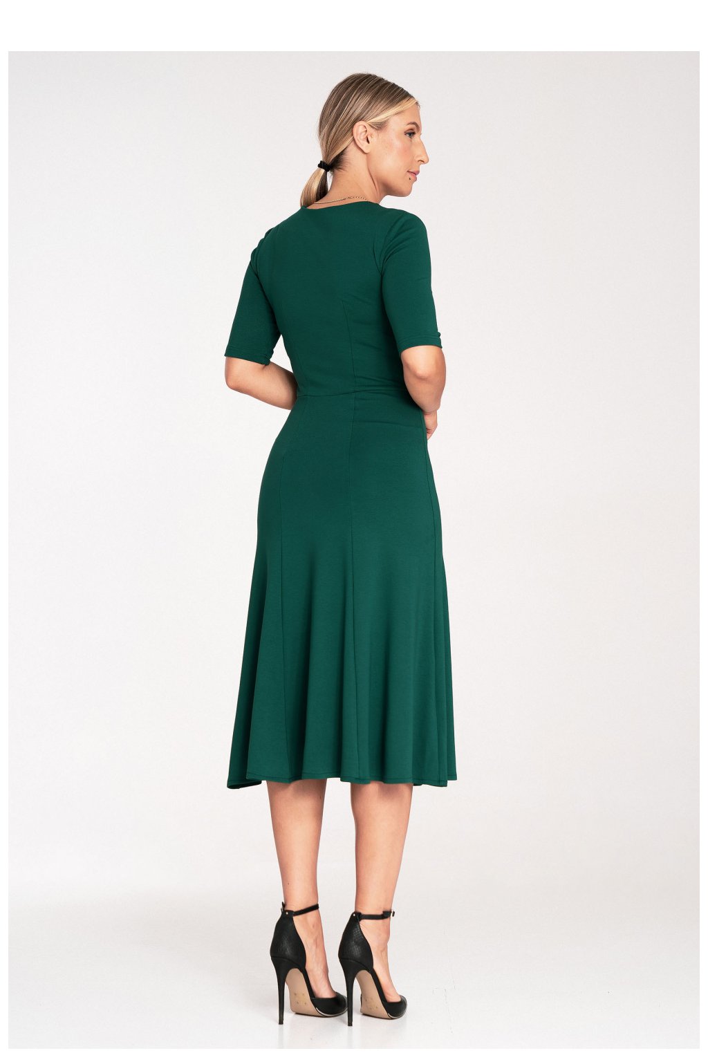 Plisované šifonové šaty s výstřihem, dlouhým rukávem a páskem. Plisování ve výstřihu a na rukávech dodává šatům eleganci. Šaty v lahvově zelené barvě.…