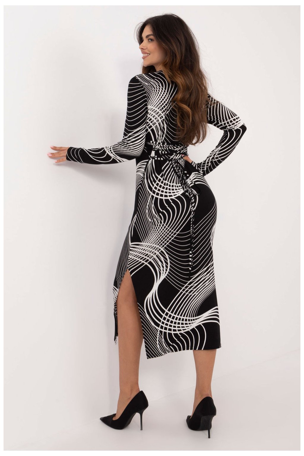 Každodenní šaty s jednoduchým, úzkým střihem jsou ideální volbou jak na běžné nošení, tak do práce. Vyrobené z prodyšné viskózy poskytují pohodlí po celý den a zároveň elegantně zdůrazňují postavu. Dominantní vzor dodává šatům odvážný, moderní charakter, ideální pro ženy, které si cení výrazného stylu. Midi délka a dlouhé rukávy dělají tyto šaty vhodné pro různá období roku, poskytují pohodlí a volnost pohybu. Kulatý výstřih zdůrazňuje krk a přidává stylizaci jednoduchosti a elegance. Bez zapínání usnadňuje oblékání šatů a korzetové šněrování vzadu umožňuje přizpůsobení a zdůraznění postavy. Tyto šaty jsou skvělým návrhem pro každodenní stylizace, spojují pohodlí s elegantním, trochu dravým vzhledem, který je ideální jak do práce, tak na neformální setkání.Viskóza 90 %