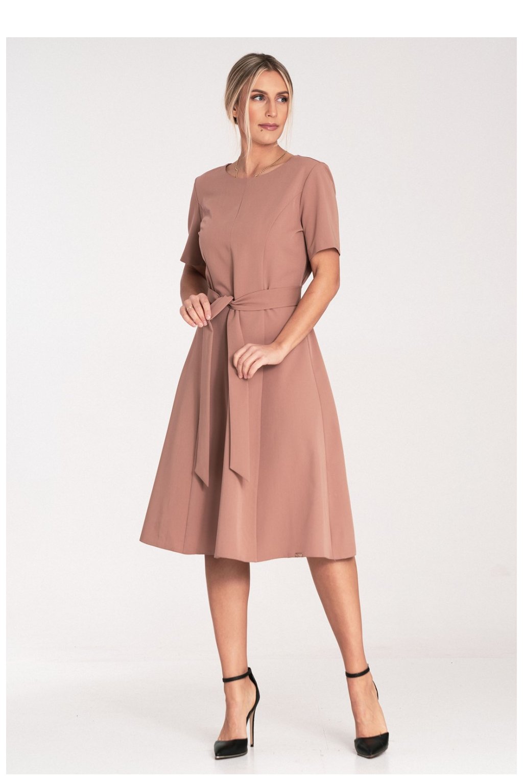 Jemný a ženský šaty ušité z hladké látky s matným povrchem jsou skvělým návrhem pro mnoho příležitostí. Jednoduchý tvar byl oživen fantazijní volánem…