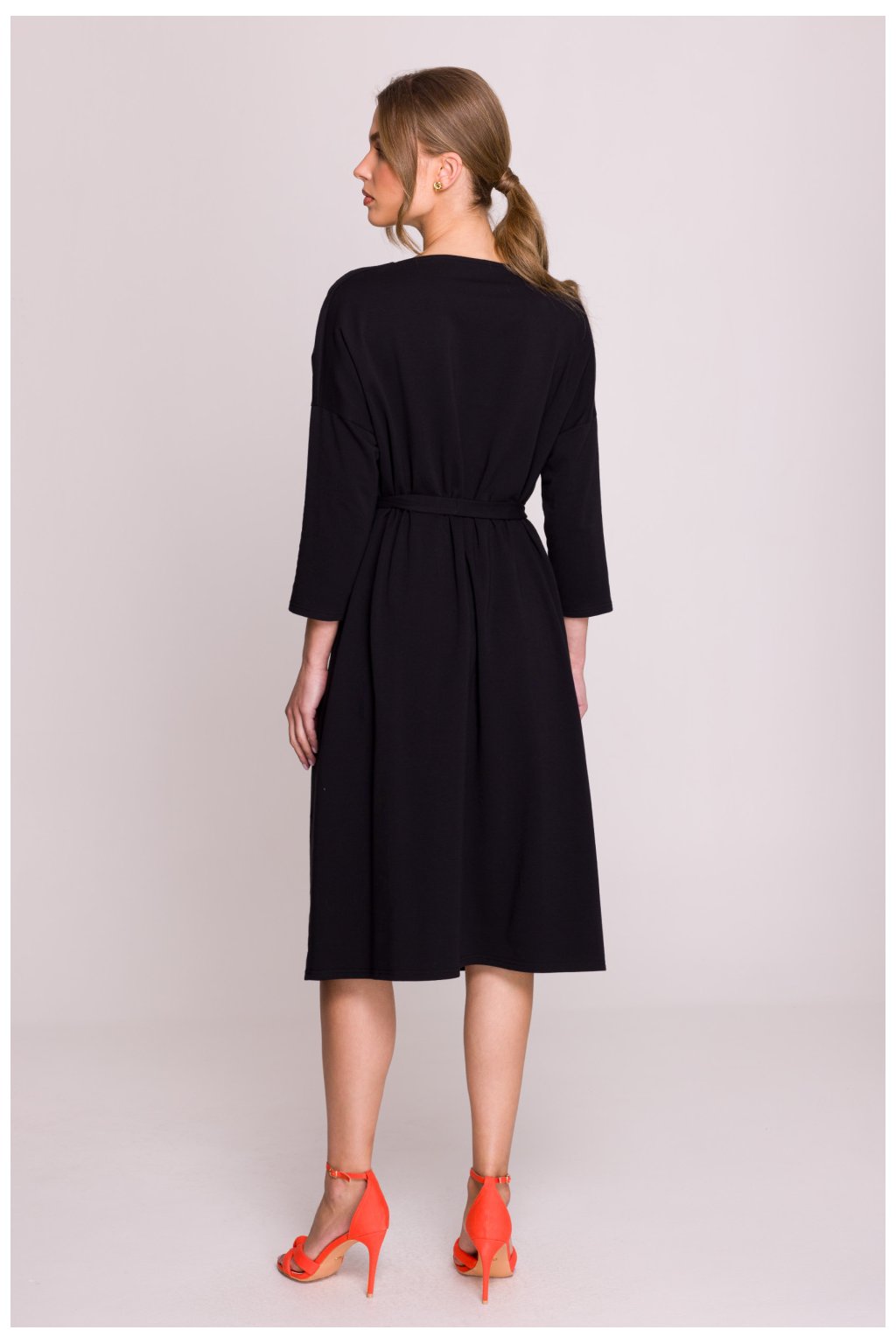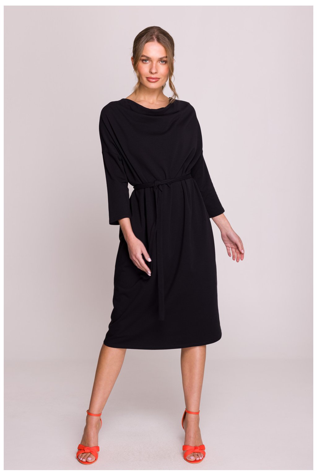 Elegantní šaty ve stylu oversize, vyrobené z vysoce kvalitní modální pleteniny, která je měkká, prodyšná a velmi příjemná na pokožku. Volný střih zajišťuje pohodlné nošení a přiložený pás umožňuje zdůraznit pas podle vlastních preferencí. Vodní výstřih dodává kreaci elegantní charakter, jemně se skládající kolem krku. Šaty mají délku nad kolena a 3/4 rukávy, co z nich činí univerzální volbu jak na každý den, tak na speciální příležitosti. Model se obléká přes hlavu, bez zbytečných zapínání. Navrženo a ušito v Polsku s důrazem na každý detail.Elastan 5 %