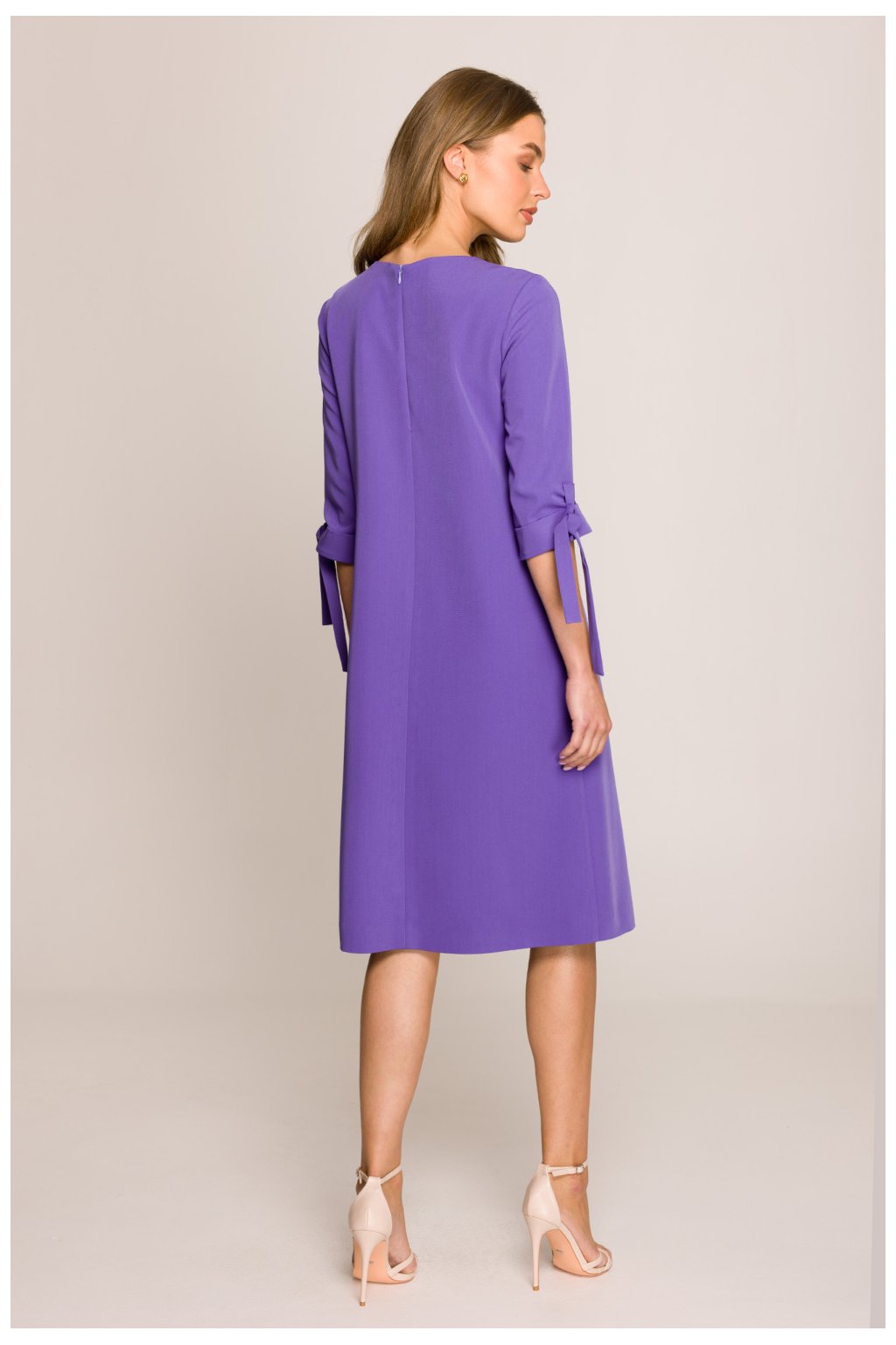 Šaty ve tvaru písmene A, které jemně zdůrazňují postavu, zachovávají elegantní a pohodlný charakter. Vyrobené z vysoce kvalitní látky, která poskytuje pohodlí po celý den. Délka pod koleno jí dodává univerzálnost, co ji činí ideální jak na každý den, tak i na formální příležitosti. 3/4 rukávy s otočením a jemným vázáním jí dodávají lehkost a ženskost. Kulatý výstřih jemně zdůrazňuje krk, a skrytý zip na zádech zajišťuje snadné oblékání. Šaty byly navrženy a ušity v Polsku, co zdůrazňuje jejich vysokou kvalitu a péči o detaily. Bez podšívky, co z nich dělá ještě lehčí a volnější na nošení. Ideální volba pro ženy, které oceňují eleganci, jednoduchost a pohodlí.Polyester 65 %