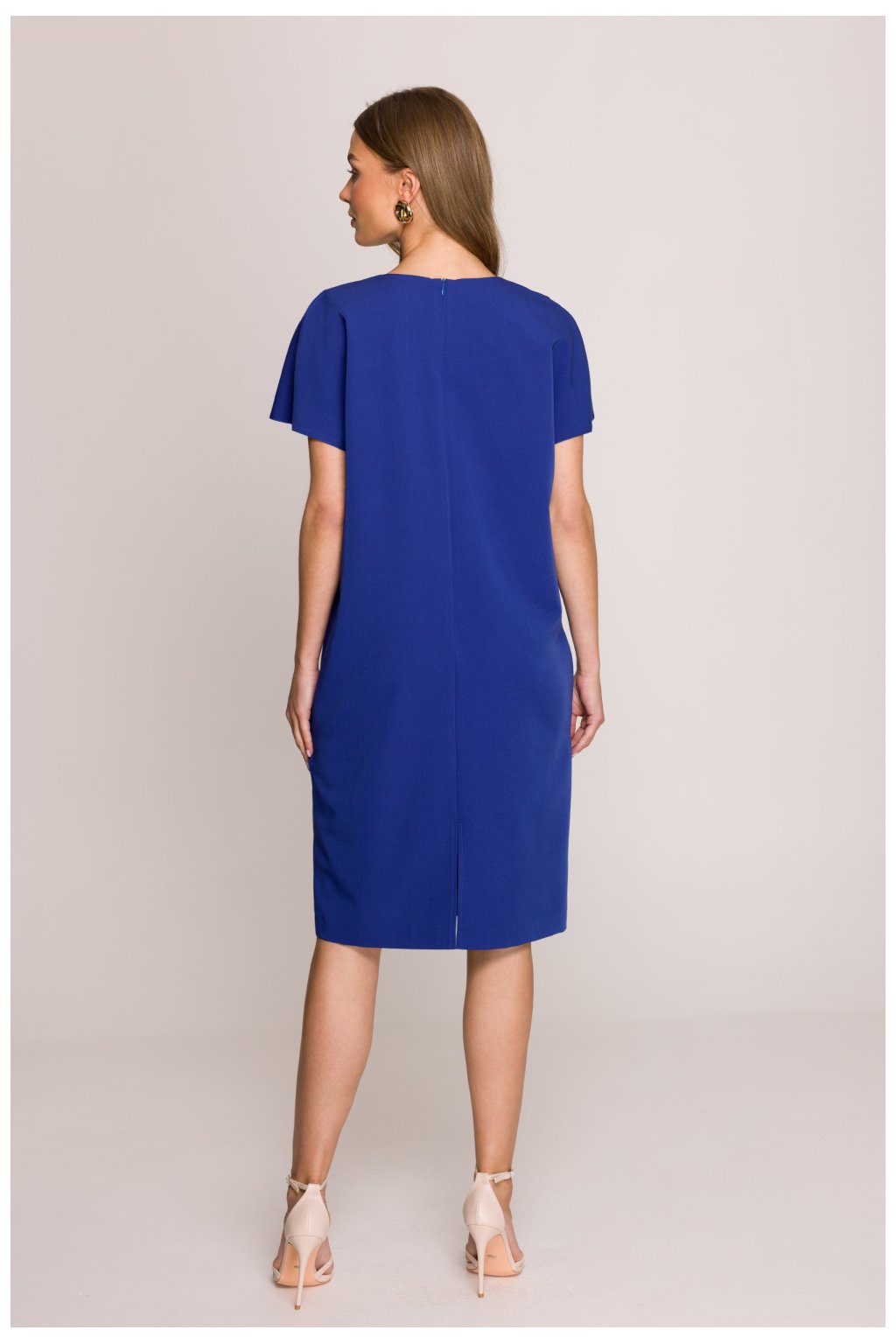 Šaty s volným střihem, který poskytuje volnost pohybu a pohodlí po celý den. Délka po kolena činí tyto šaty univerzální volbou pro mnoho příležitostí. Krátké rukávy dodávají lehkost a skvěle se hodí do teplejších dní. Výstřih ve tvaru písmene V jemně zdůrazňuje krk, dodávajíc šatům ženský charakter. Skrytý zip na zádech zajišťuje pohodlí při oblékání a dodatečný rozpark na spodní části zádů přidává šatičkám elegantní akcent. Šaty jsou bez podšívky, co je činí ještě prodyšnějšími a pohodlnějšími. Navrženy a ušity v Polsku, co zaručuje vysokou kvalitu zpracování a pečlivost o detaily. Skvělá volba pro ženy, které si cení styl, pohodlí a eleganci ve svých každodenních outfitcích.Polyester 65 %