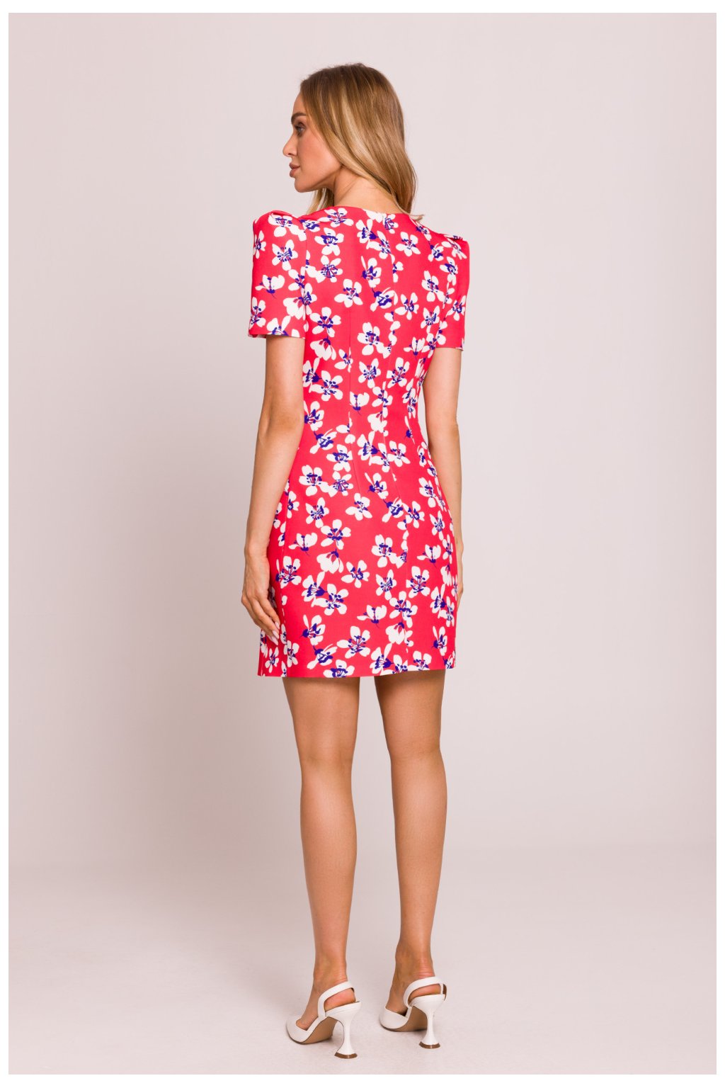 Elegantní a ženské mini šaty vyrobené z vysoce kvalitní látky s květinovým potiskem. Model zdůrazňuje pas díky jemným prošitím a krátké rukávy s polštářky jí dodávají výjimečný charakter. Šaty se zapínají vzadu na skrytý zip, co zajišťuje pohodlí nošení a estetické provedení. Bez podšívky jsou lehké a ideální na teplé dny. Celý kousek byl navržen a ušit v Polsku s důrazem na každý detail.Polyester 95 %