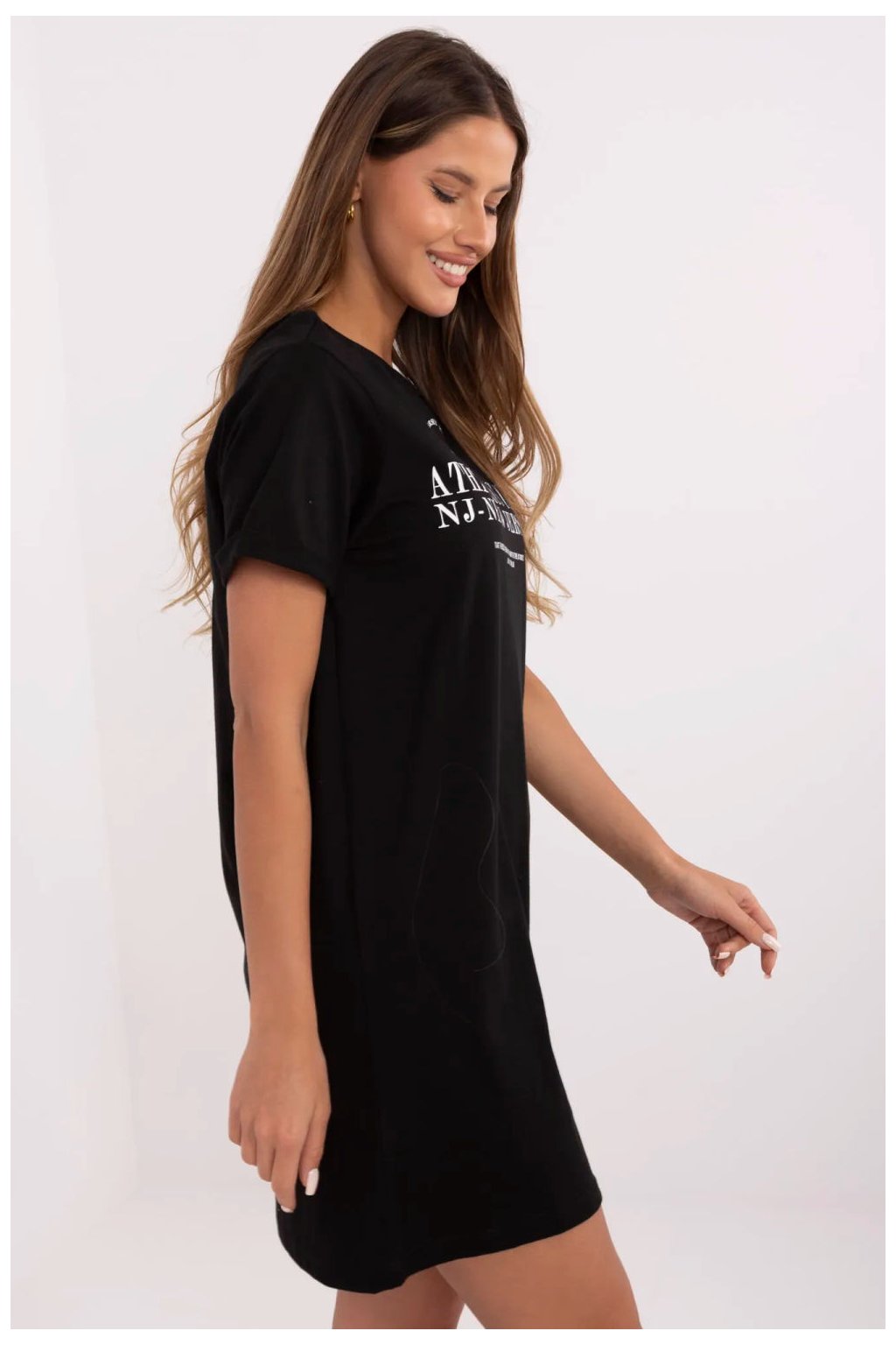 Každodenní šaty s jednoduchým střihem jsou ideální kombinací pohodlí a stylu. Vyrobené z měkkého, prodyšného bavlny, zajistí pohodlí po celý den. Klasický krátký rukáv a kulatý výstřih jí dodávají univerzální charakter, zatímco délka nad koleno ji činí skvělou volbou pro každý den. Přední část šatů zdobí módní potisk, který jim dodává originalitu a zdůrazňuje jejich ležérní styl. Skvěle se hodí k teniskám, sandálům nebo keckám, vytvářejíc lehký a volný outfit na každou příležitost.Velikost | Obvod prsou | Obvod v pase |