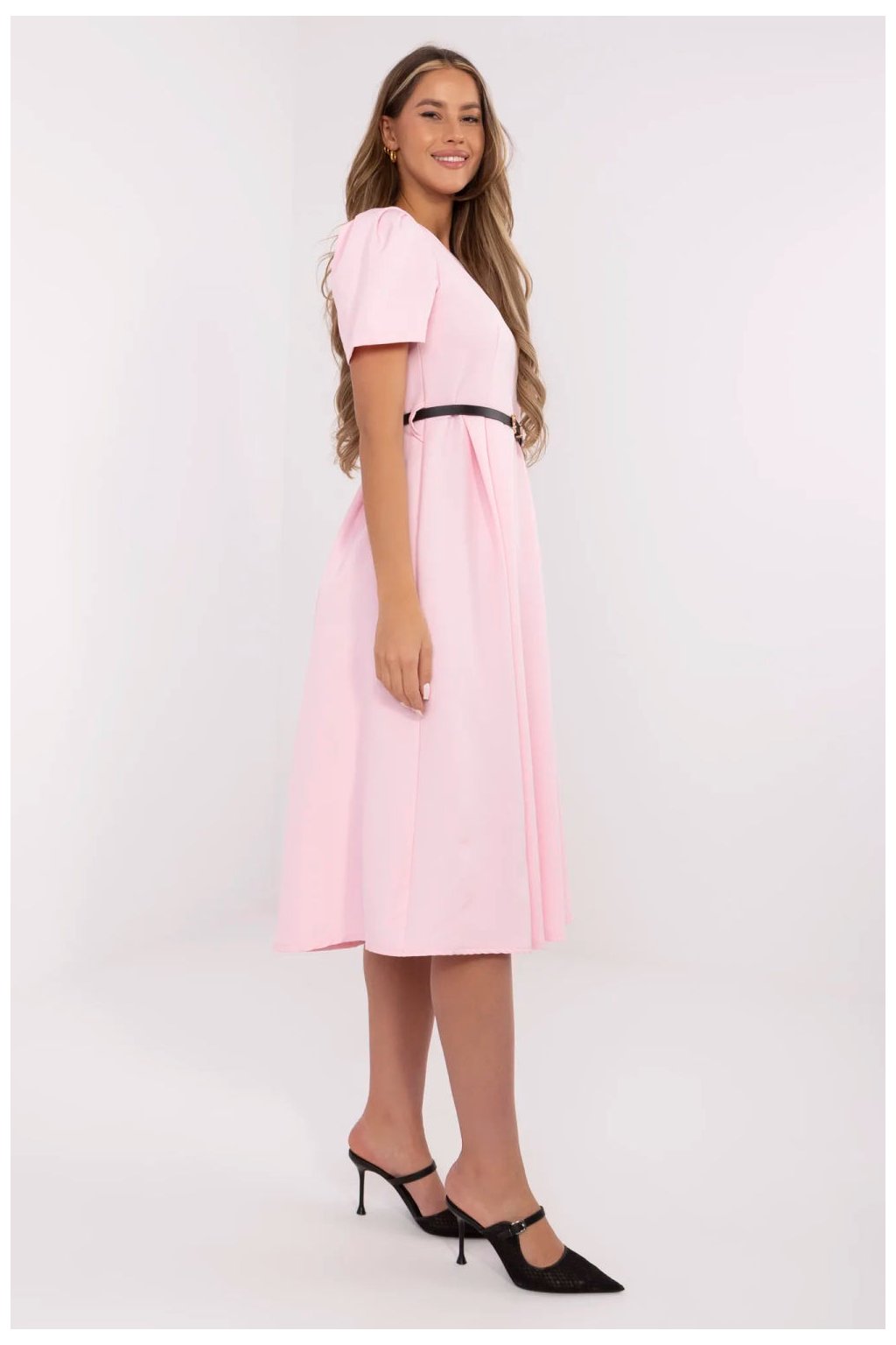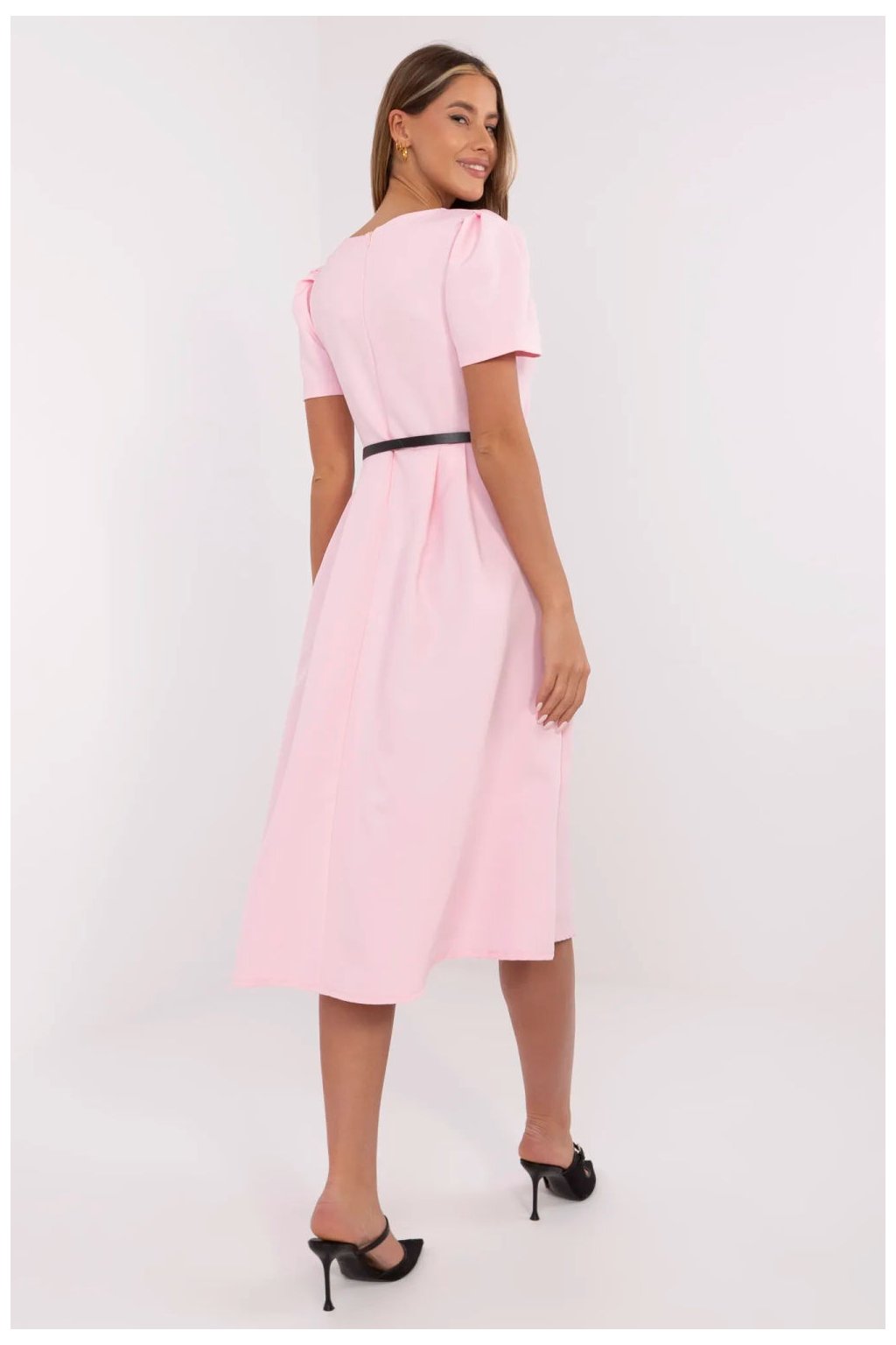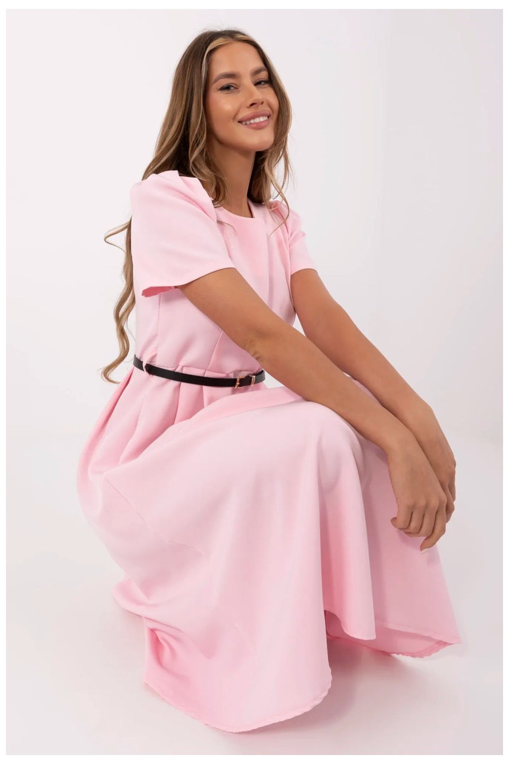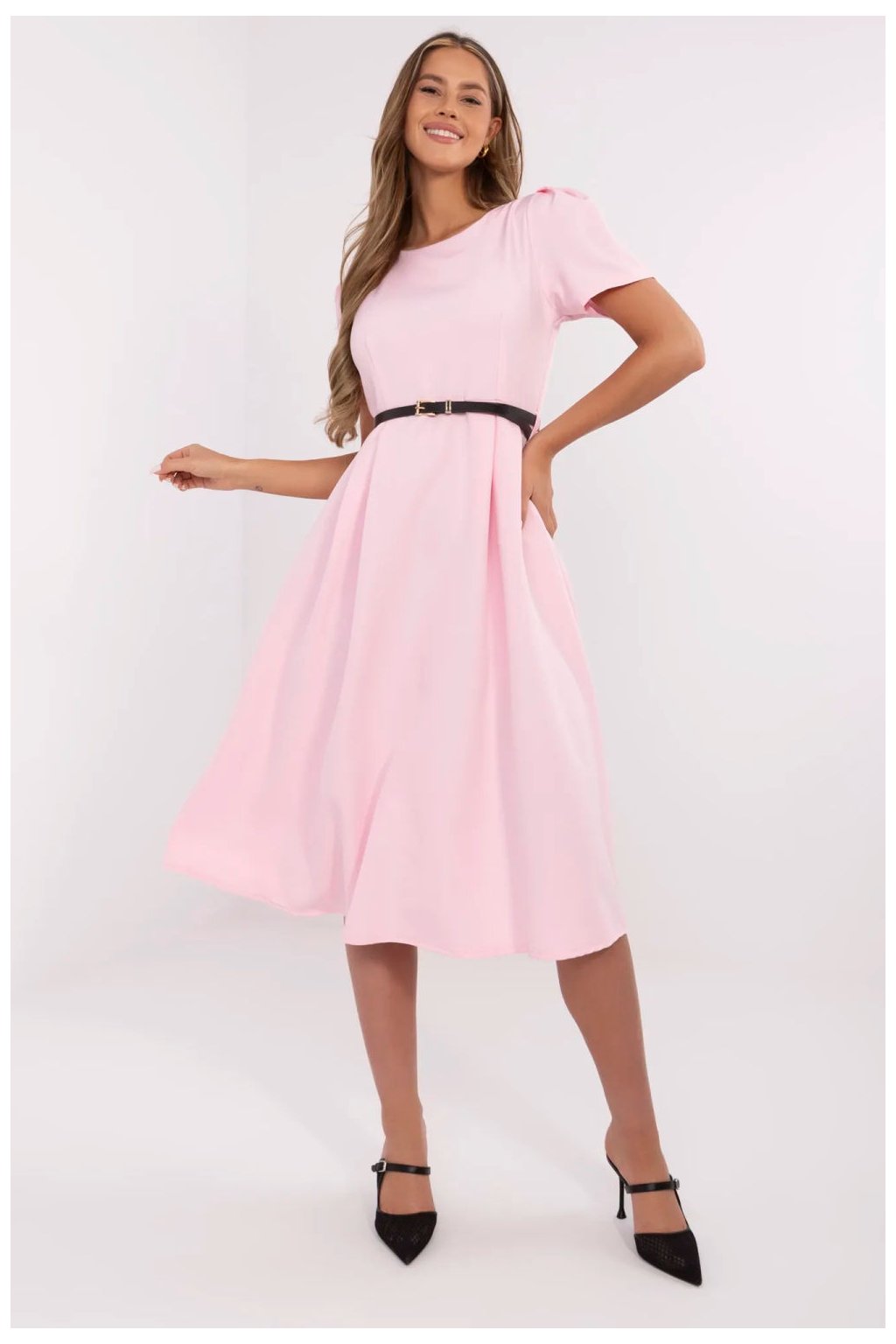 Klasické a ženské šaty s rozšířeným střihem jsou skvělou volbou pro ženy, které ocení eleganci a pohodlí. Vyrobené z měkkého, elastického materiálu (polyester s přídavkem elastanu), krásně padnou na postavě a zajišťují volnost pohybu. Model midi délky s krátkým rukávem a kulatým výstřihem se hodí jak do práce, tak na společenské události. Jemné záhyby na ramenou a v pasu dodávají celku něžný objem a zdůrazňují pas, zatímco zapínací pásek ještě výrazněji zvýrazňuje ženskou siluetu. Hladký materiál v kombinaci se čistou linií a zapínáním na zip na zádech vytváří nadčasový vzhled, který skvěle ladí s elegantními doplňky.Polyester 95 %