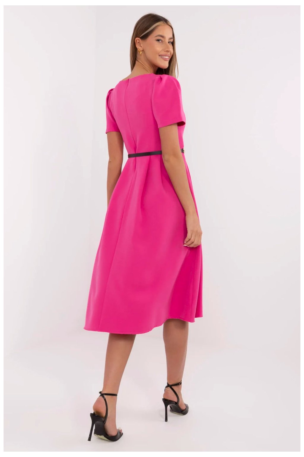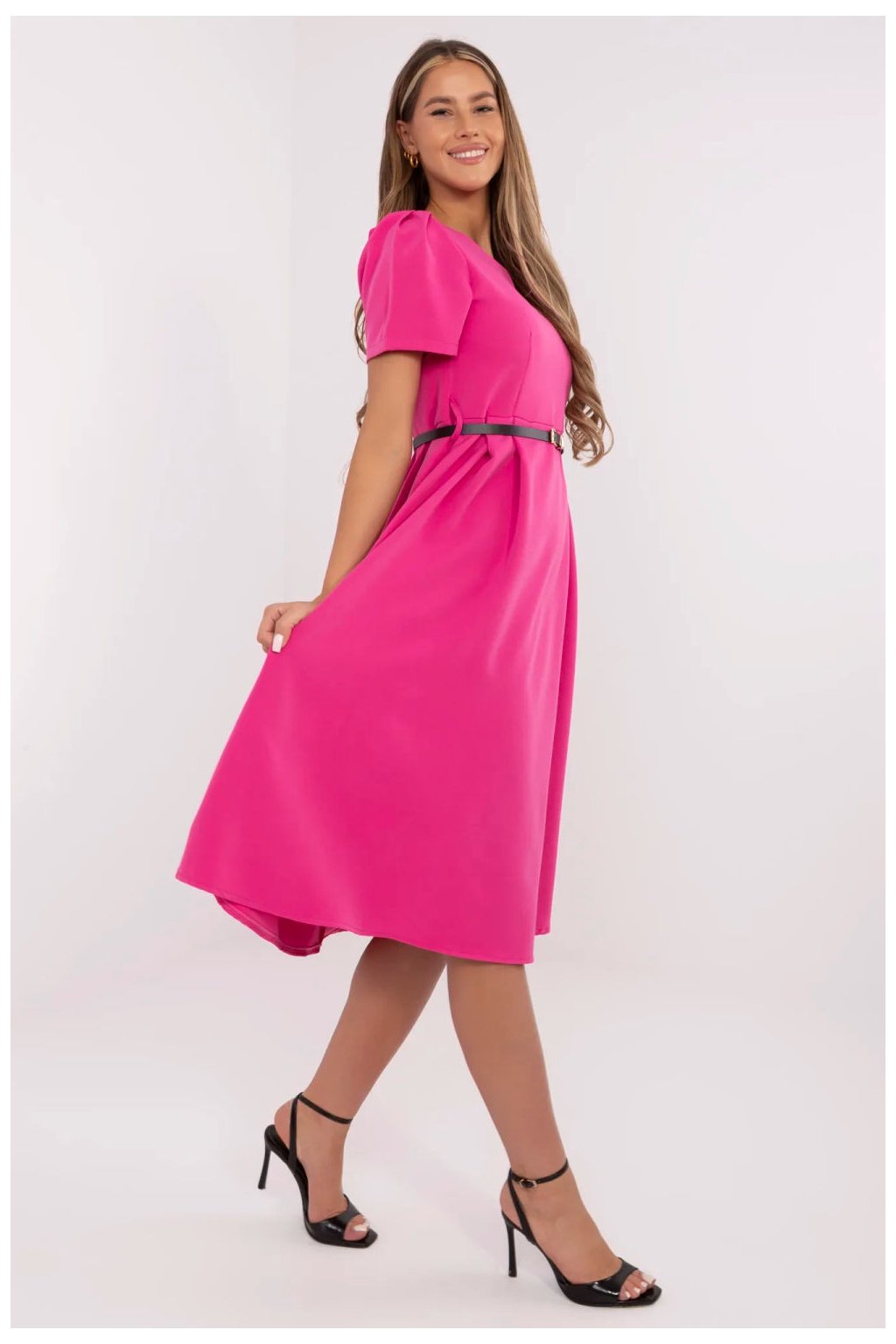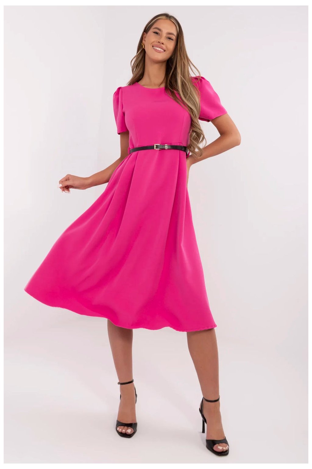 Klasické a ženské šaty s rozšířeným střihem jsou skvělou volbou pro ženy, které ocení eleganci a pohodlí. Vyrobené z měkkého, elastického materiálu (polyester s příměsí elastanu) se krásně přizpůsobují postavě a zajišťují volnost pohybu. Model midi délky s krátkým rukávem a kulatým výstřihem je vhodný jak do práce, tak na společenské události. Jemné záhyby na ramenech a v pase přidávají celku jemný objem a zdůrazňují pas, zatímco zapínací pásek ještě více zdůrazňuje ženskou siluetu. Hladký materiál v kombinaci s jednoduchou linií a zapínáním na zip na zádech vytváří nadčasový vzhled, který skvěle ladí s elegantními doplňky.Polyester 95 %