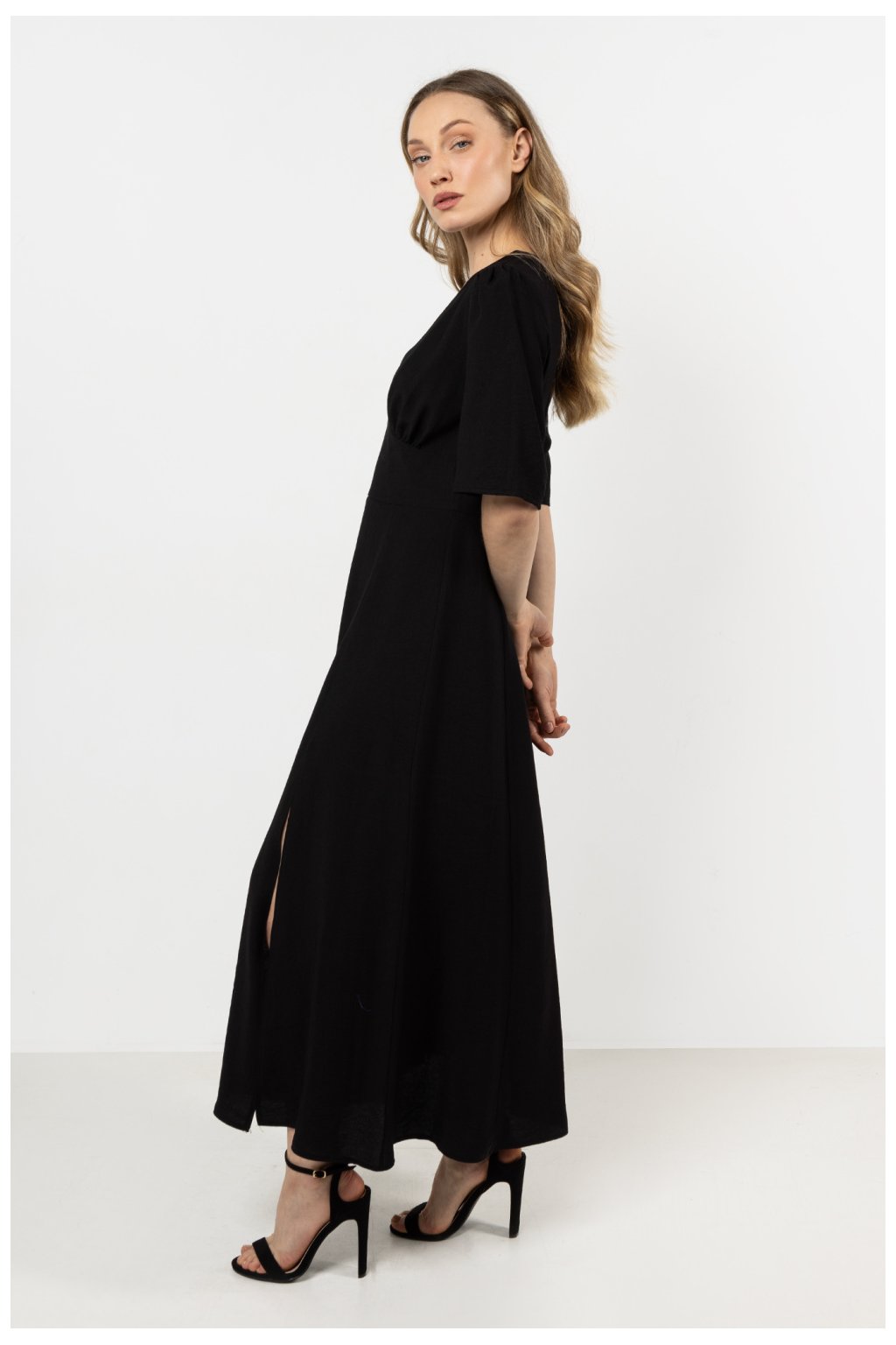 Elegance a lehkost, toto šaty je ideální kombinací klasiky a ženské půvabu. Přilnavý střih zvýrazňuje postavu a široký pás modeluje pas. Výstřih ve tvaru V a jemné nařasení na prsou dodávají něžnost, a rozparek na noze zajišťuje volnost pohybu. Vyrobeno z měkkého rayonu, zaručuje komfort po celý den.Složení: 87% rayon, 13% nylon