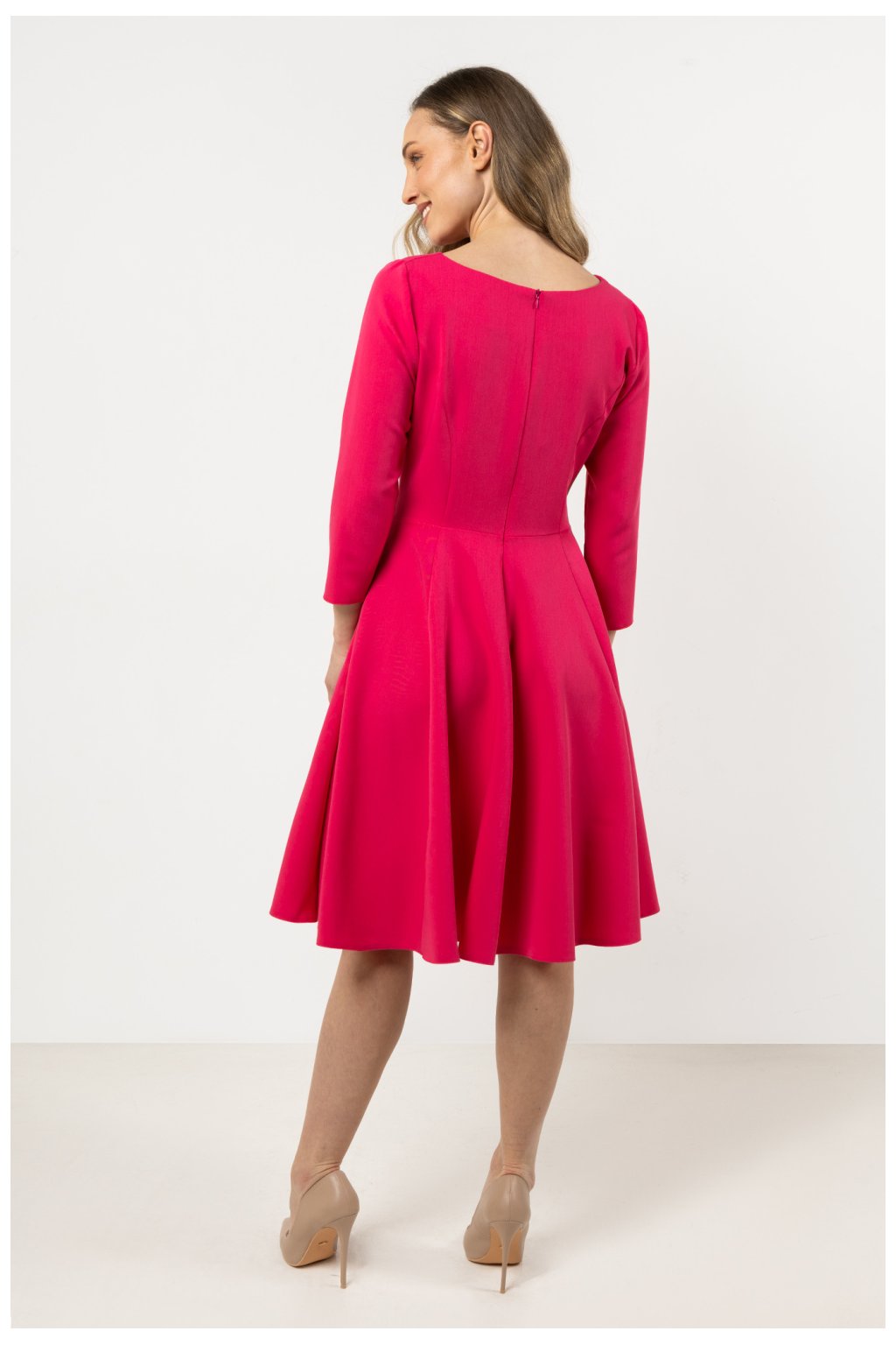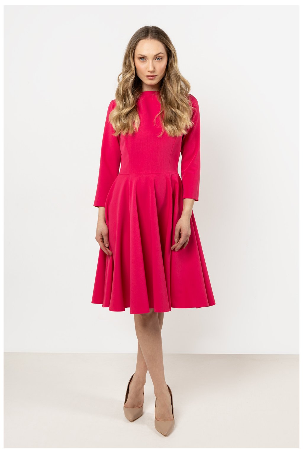 Elegance a volnost, toto šaty jsou ideální volbou na výjimečné příležitosti. Rozšířený střih krásně zvýrazňuje postavu a zajišťuje pohodlí při nošení. Lodičkový výstřih se zdobenými záhyby dodává subtile šarm, a rukávy 3/4 doplňují klasický, stylový vzhled. Skvěle se hodí na večírky, oslavy nebo elegantní výstupy.Polyester 60 %