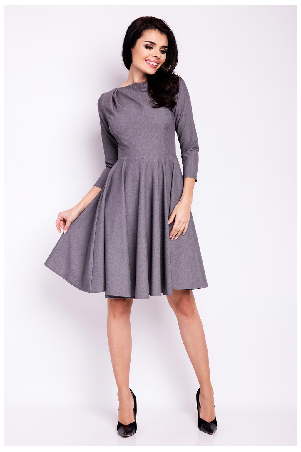 Elegance a volnost, toto šaty jsou ideální volbou pro výjimečné příležitosti. Rozšířený střih krásně zvýrazňuje siluetu a zajišťuje komfort nošení. Lodičkový výstřih s ozdobnými záhyby dodává jemné kouzlo, a rukávy 3/4 doplňují klasický, stylový vzhled. Skvěle se hodí na oslavy, slavnosti či elegantní výstupy.Polyester 60 %