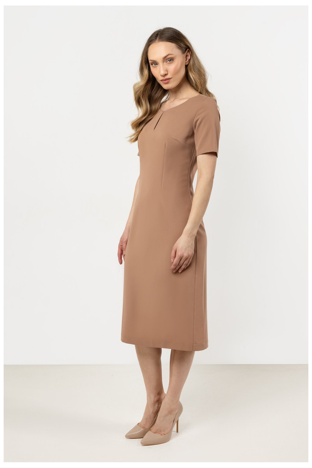 Tento šaty jsou ideální volbou pro mnoho příležitostí. Přiléhavý střih krásně zvýrazňuje postavu, zatímco krátké rukávy a lodičkový výstřih s jemným rozparkem jí dodávají na eleganci. Skrytý zip zajišťuje pohodlí při nošení a univerzální střih usnadňuje styling jak na denní nošení, tak na elegantní vycházky.Polyester 60 %
