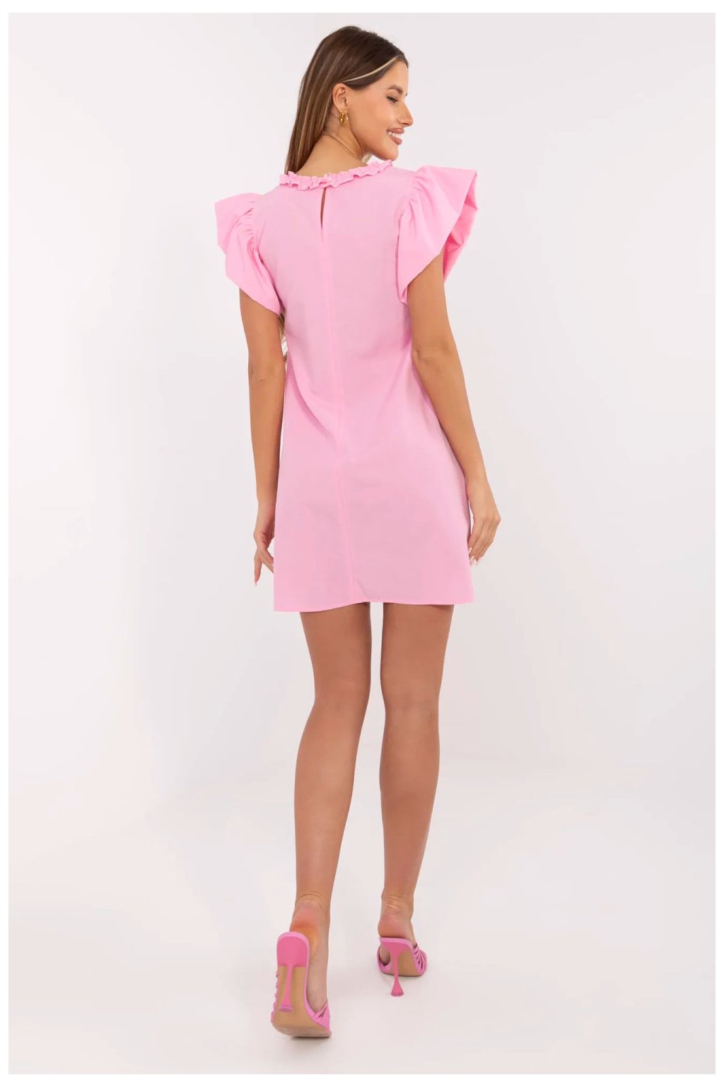 Letní šaty s rozšířeným střihem jsou ideální volbou na teplé dny, jak do práce, tak do každodenního nošení. Vyrobené z prodyšné, dominující bavlny, poskytují pohodlí a volnost pohybu po celý den. Model před kolena vypadá žensky a lehce, a jemné detaily mu dodávají půvab. Krátké rukávy ve formě volánků dávají šatům romantický charakter, a kulatý výstřih zakončený jemným volánem zdůrazňuje jejich jemný styl. Bez zapínání jsou tyto šaty neuvěřitelně pohodlné a snadno se oblékají. Hladký vzor z nich činí univerzální a snadno kombinovatelné, skvěle ladí s lehkými sandály, balerínami nebo košíkovou kabelkou. Je to must-have v letním šatníku každé ženy.| Velikost | Obvod prsou | Obvod v pase |