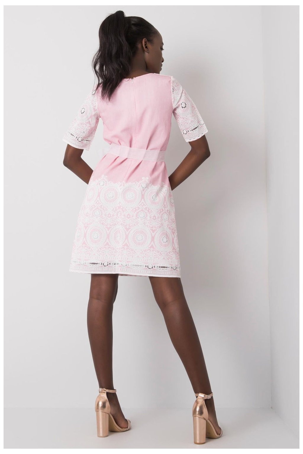 Elegantní šaty s decentním potiskem v dolní části a na rukávech jsou skvělým návrhem pro významné příležitosti a stylové pracovní outfity. Vyrobené z převažujícího lnu poskytují přirozenou prodyšnost a pohodlí nošení a zároveň vypadají mimořádně elegantně. Model do kolena s krátkým rukávem a klasickým kulatým výstřihem vytváří vyváženou a elegantní siluetu. Šaty mají praktické zapínání na skrytý zip, co usnadňuje oblékání a zdůrazňuje estetické provedení celku. Další výhodou je podšívka, která zvyšuje pohodlí a brání propínání materiálu. Dekorativní potisk dodává šatům charakter, zachovávajíc zároveň elegantní, decentní styl. Je to ideální volba pro ženy, které si váží kvality, elegance a jemných detailů.| Velikost | Obvod prsou | Obvod v pase |