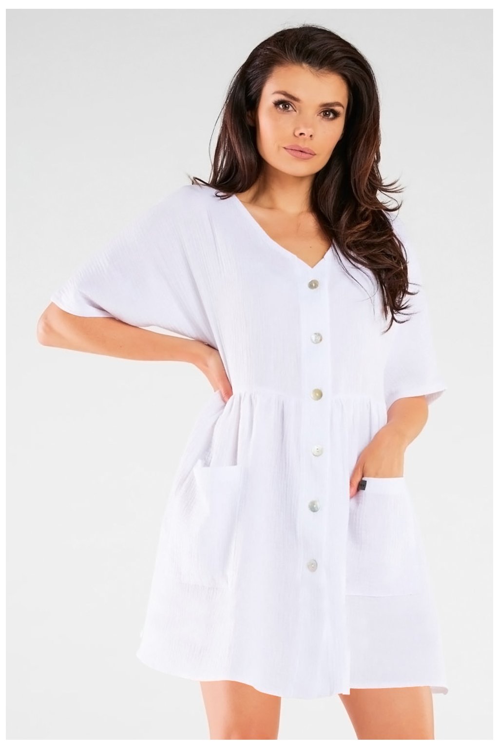 Klasické šaty jsou ideální volbou pro ženy, které ocení ležérní styl. Střih připomíná košili, díky čemuž je celkový dojem neuvěřitelně elegantní a stylový. Navrženo a ušito v Polsku.Lycra 8 %