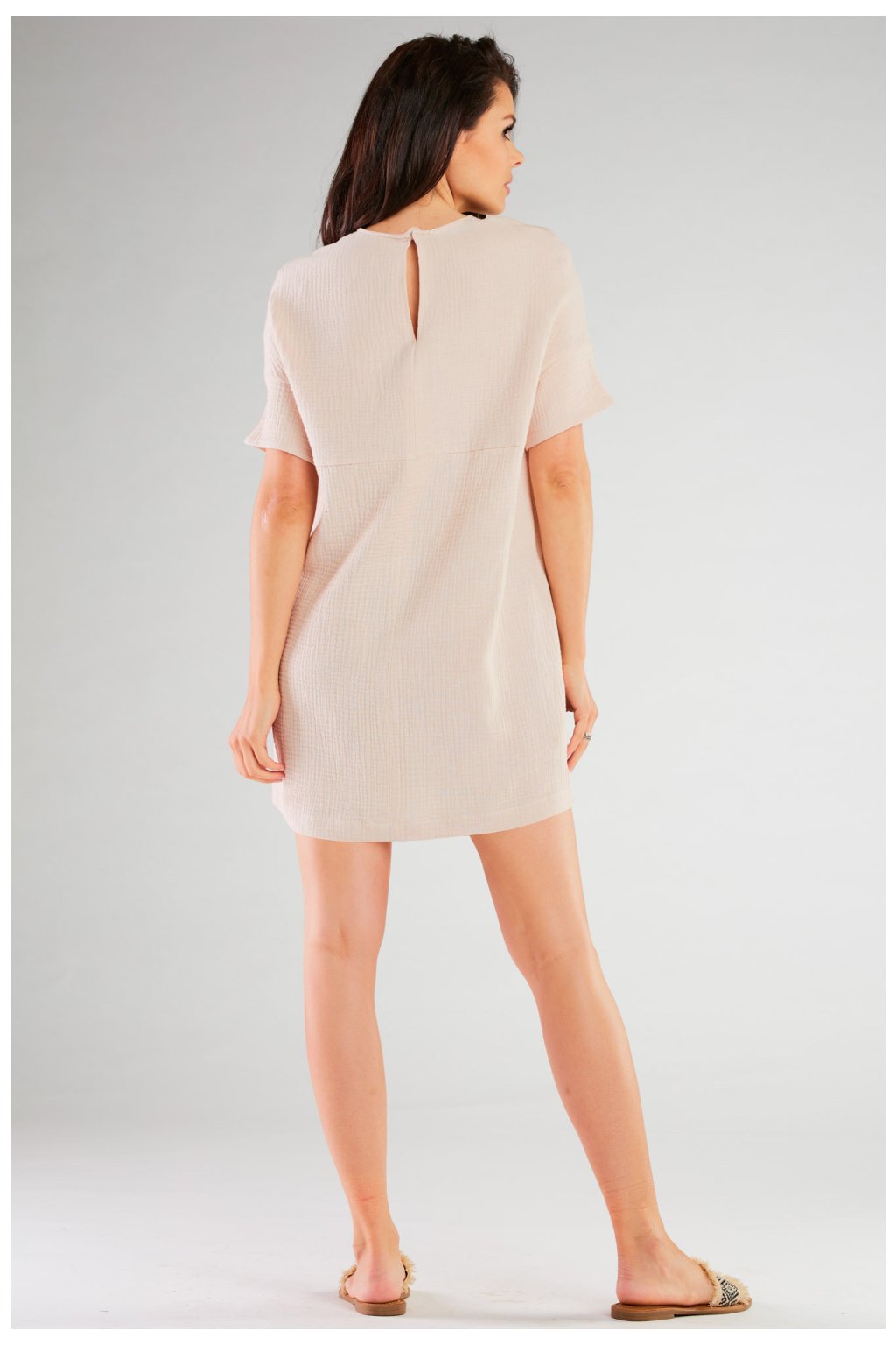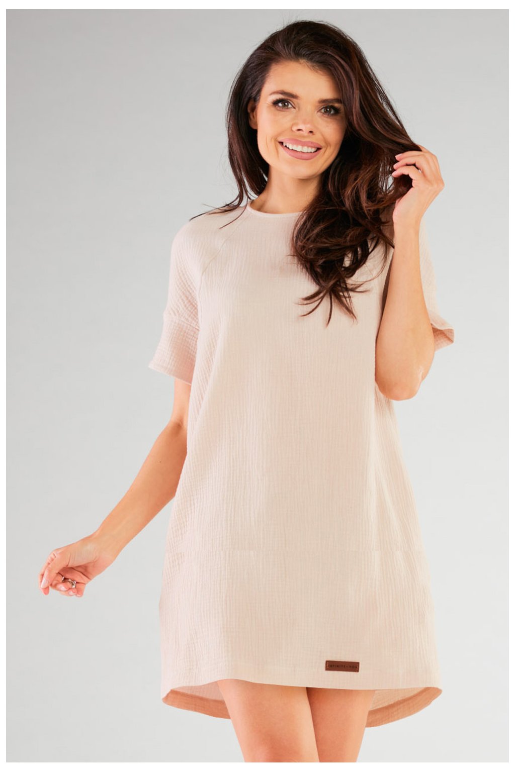 Volná mini šaty s krátkým rukávem, vyrobená z příjemné pleteniny. Materiál zajišťuje obrovský komfort nošení a umožňuje kůži volné dýchání. Navrženo a ušito v Polsku.Lycra 8 %