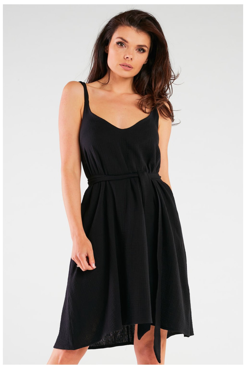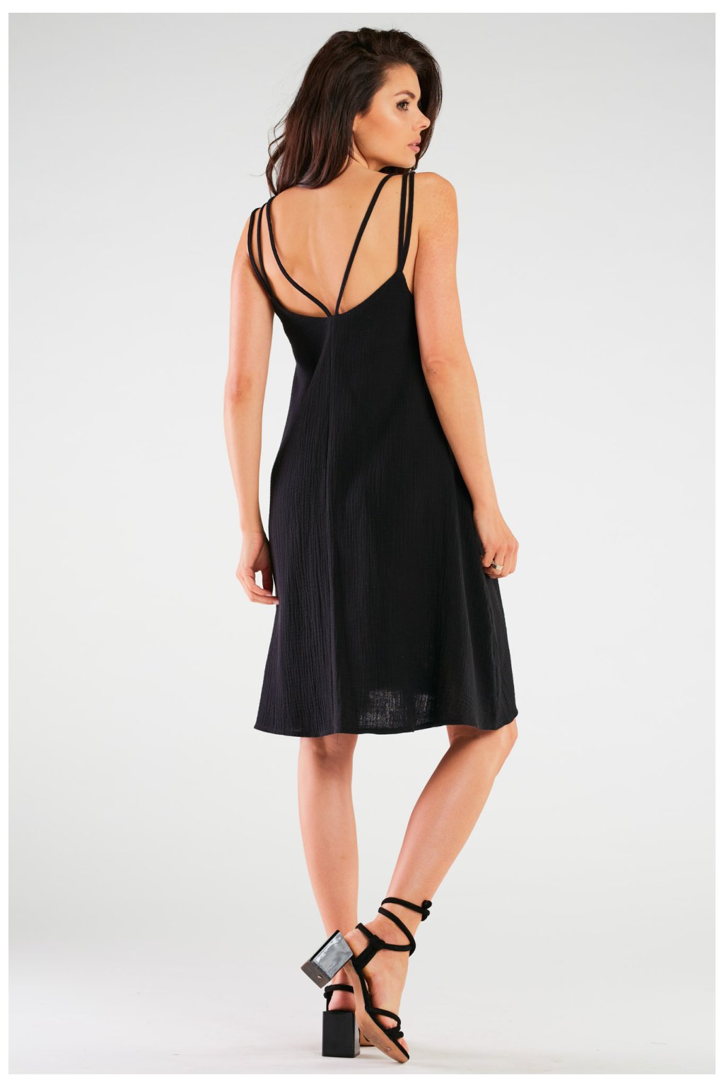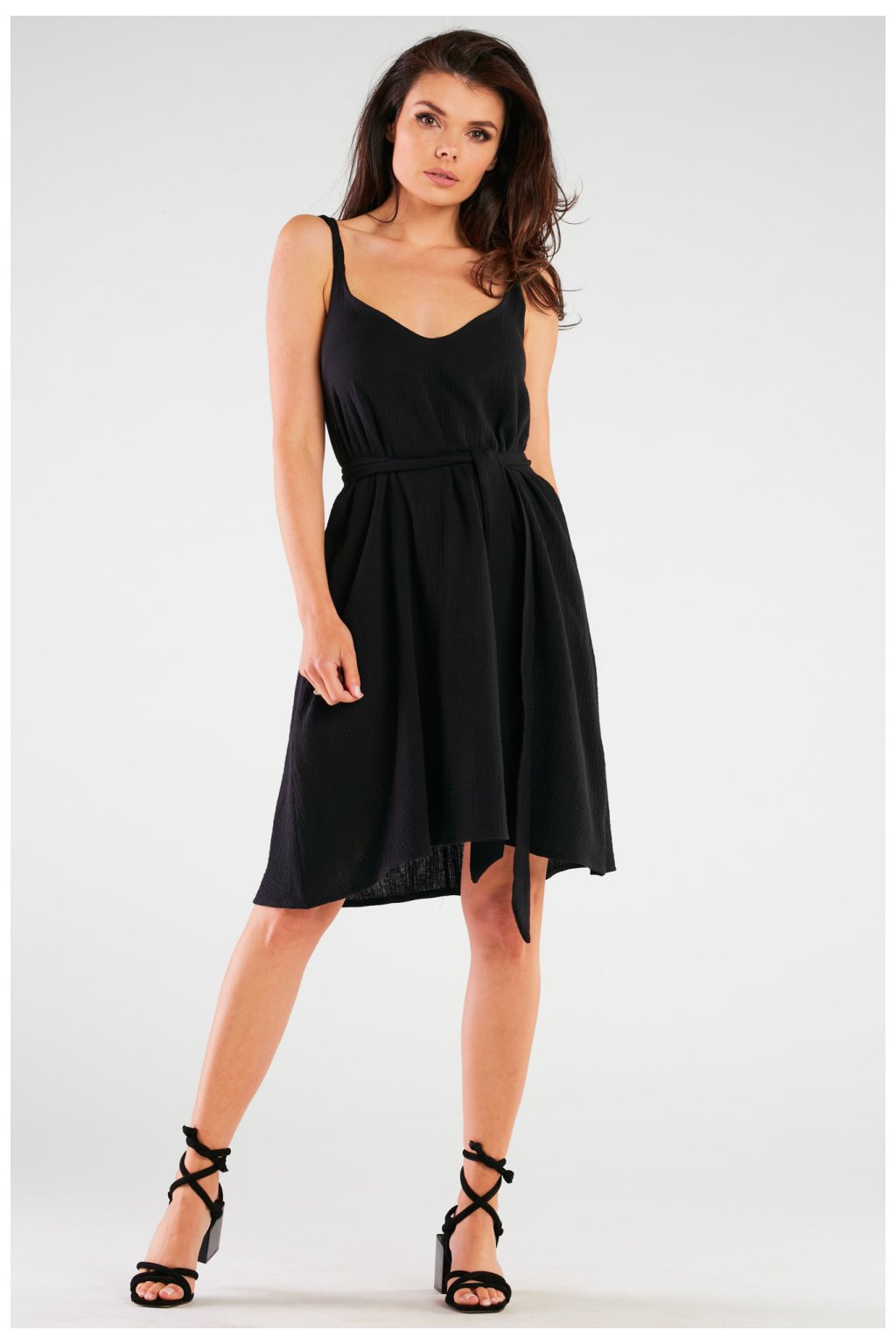 Šaty vyrobené z neuvěřitelně příjemného a elastického materiálu, který dokáže zajistit neomezený komfort a pohodlí při nošení. Model s tenkými ramínky a kulatým výstřihem skvěle zdůrazňuje horní část těla. Navrženo a ušito v Polsku.Lycra 8 %