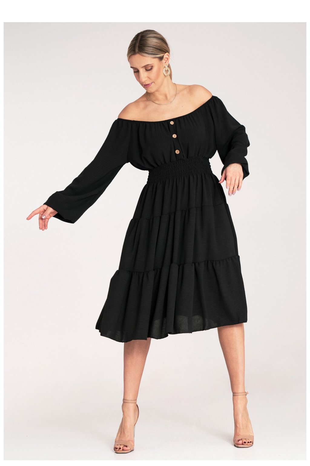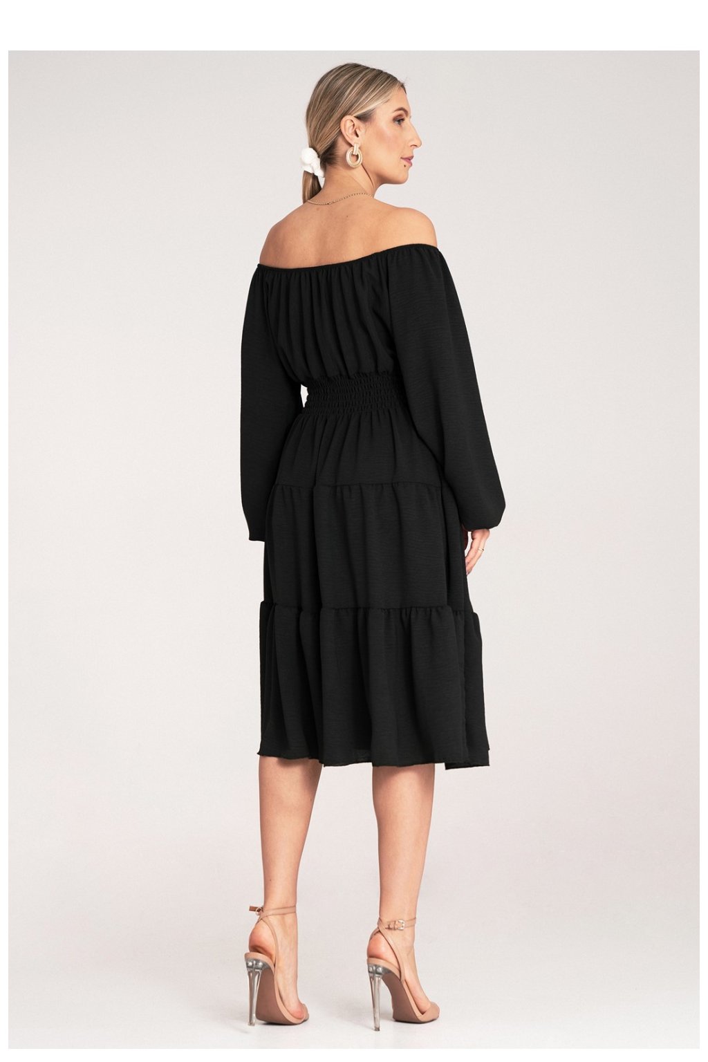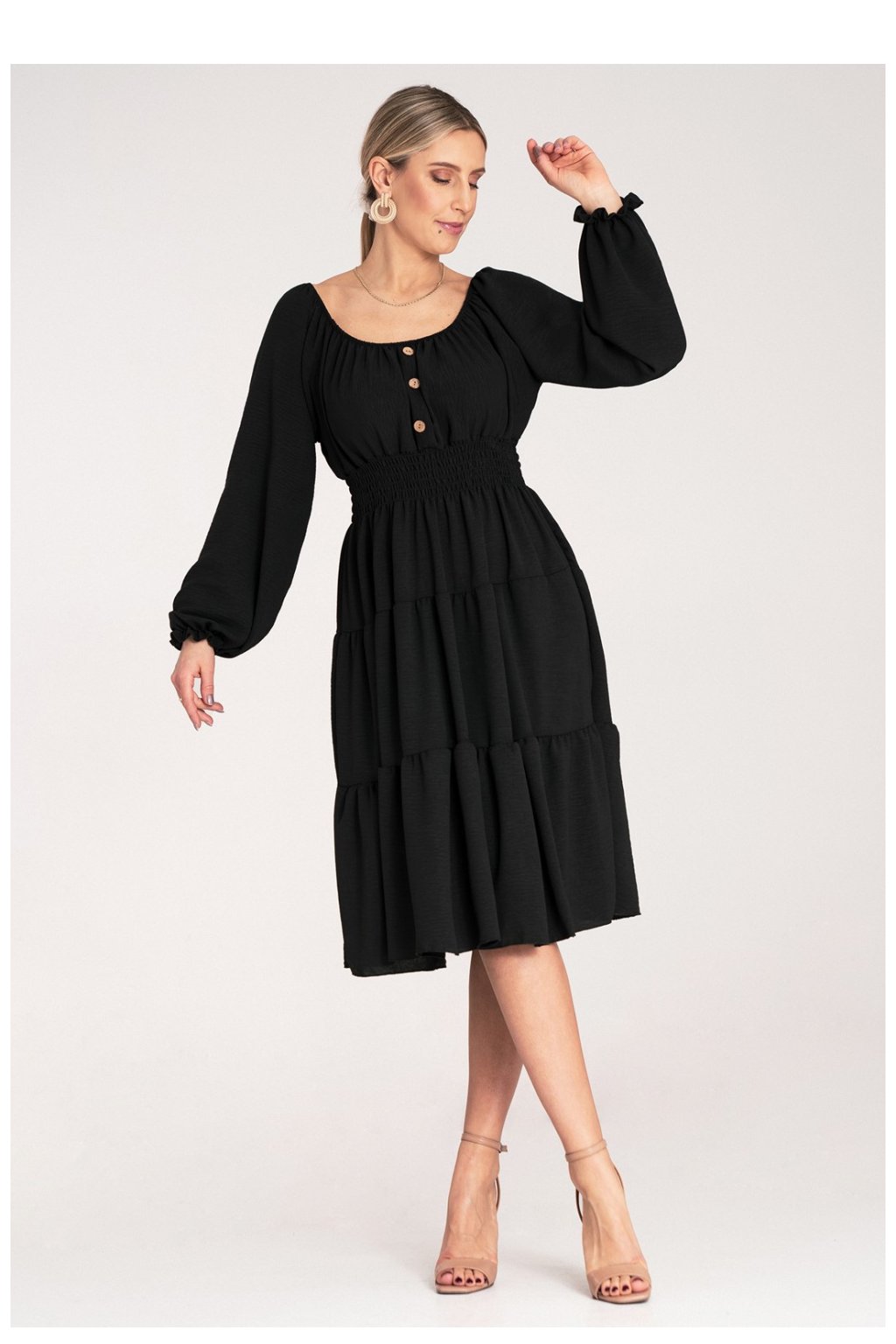 Elegantní šaty s dlouhými průhlednými rukávy. Krásná mašle v pase, kterou lze uvázat mnoha způsoby, a krytý zip na zádech. Model krásně zdůrazňuje…