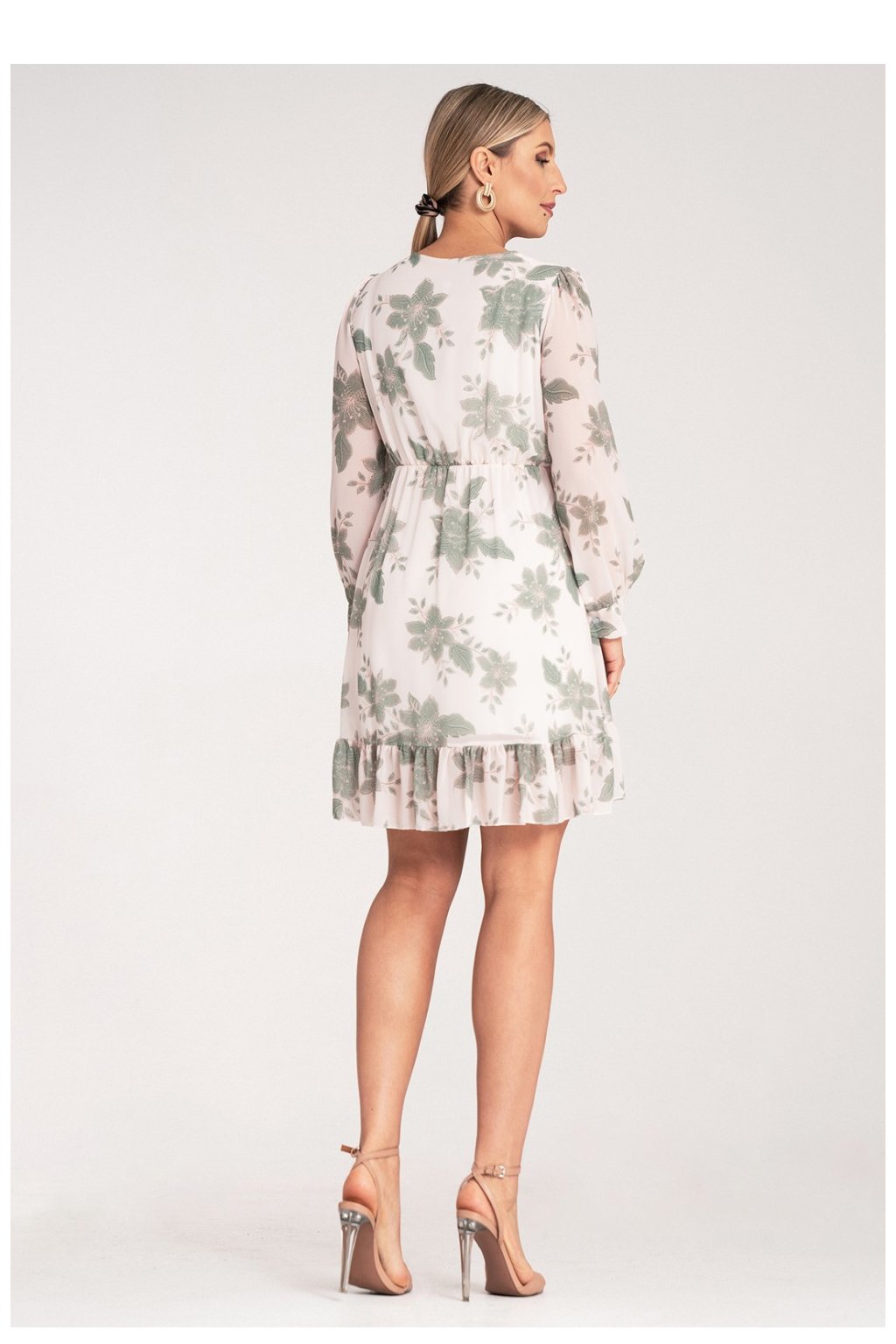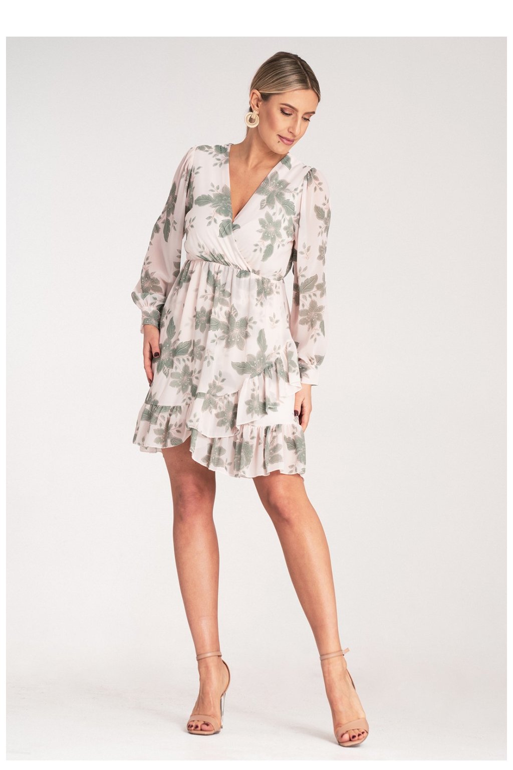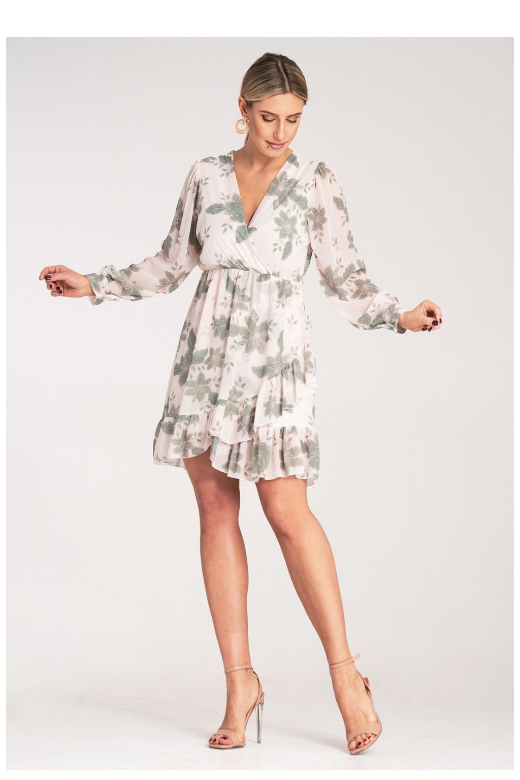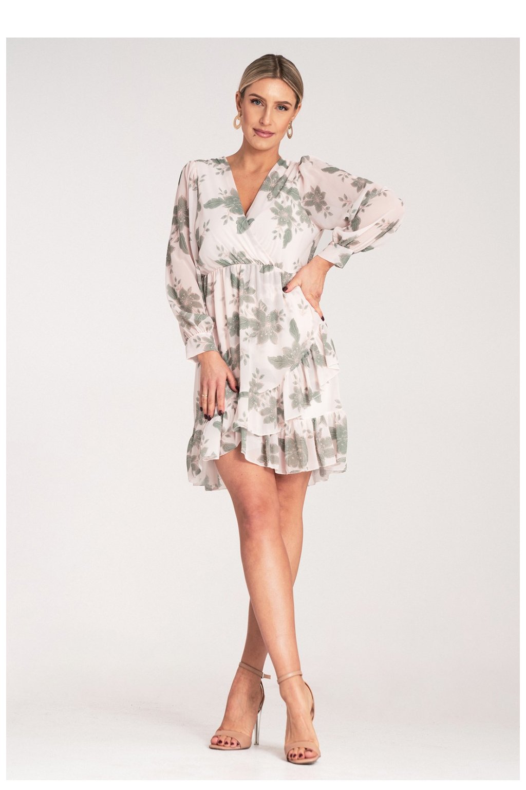 Elegantní šaty s 3/4 rukávy a volánky. Model působí nádherně a expresivně. Jednoduchý, originální tvar obepíná siluetu a dodává jí romantiku.