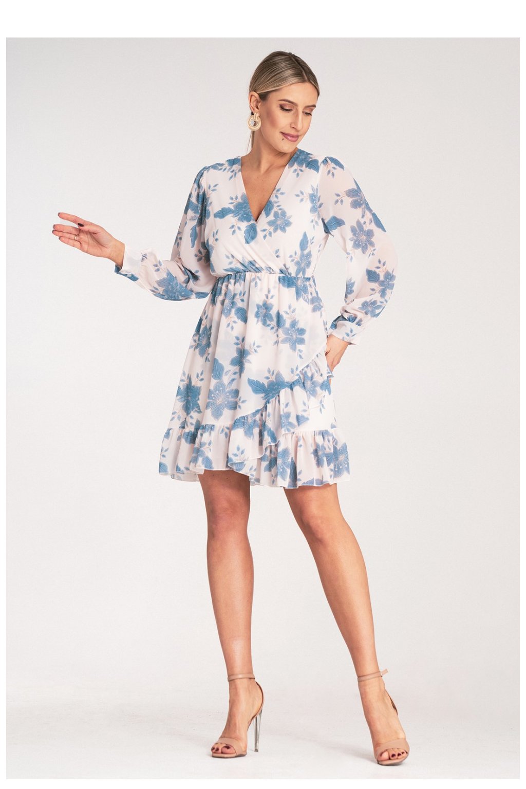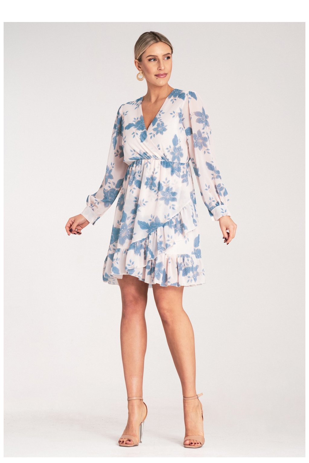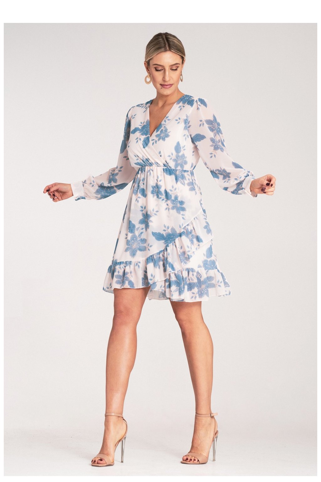 Elegantní šaty s 3/4 rukávy a volánky. Model působí nádherně a expresivně. Jednoduchý, originální tvar obepíná siluetu a dodává jí romantiku.